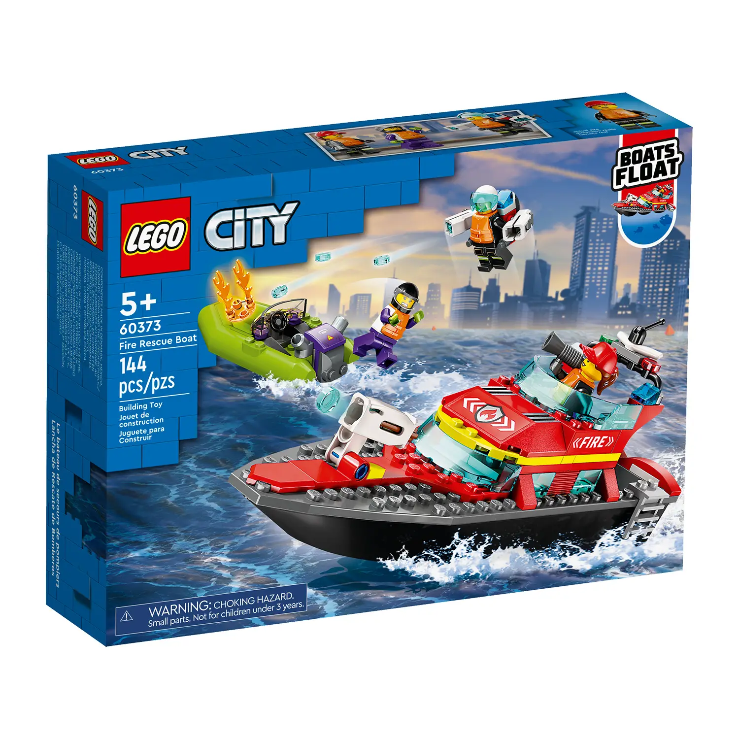 - ✅ Playset Barca di soccorso antincendio LEGO City con barca dei pompieri, gommone e 4 minifigure incluse.
