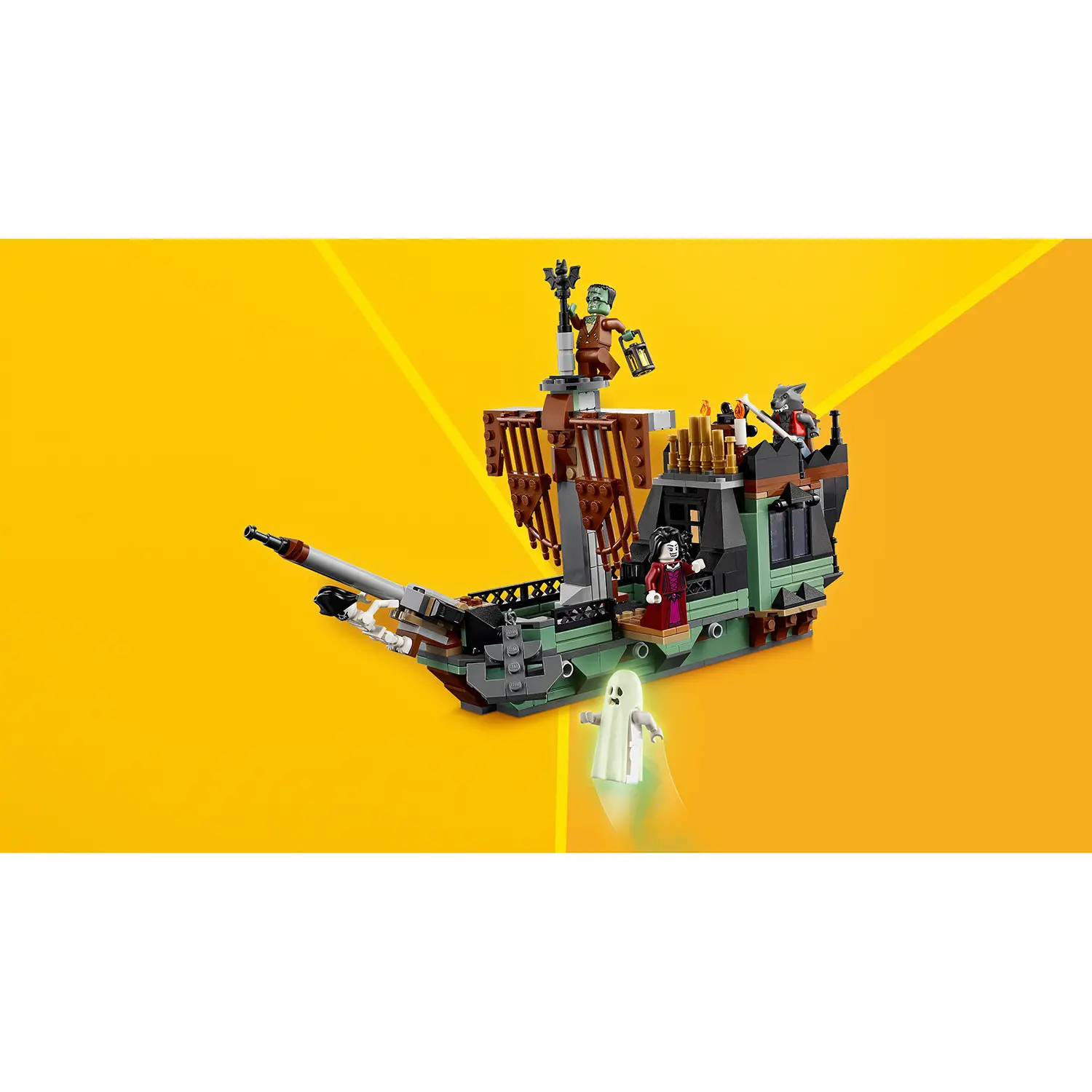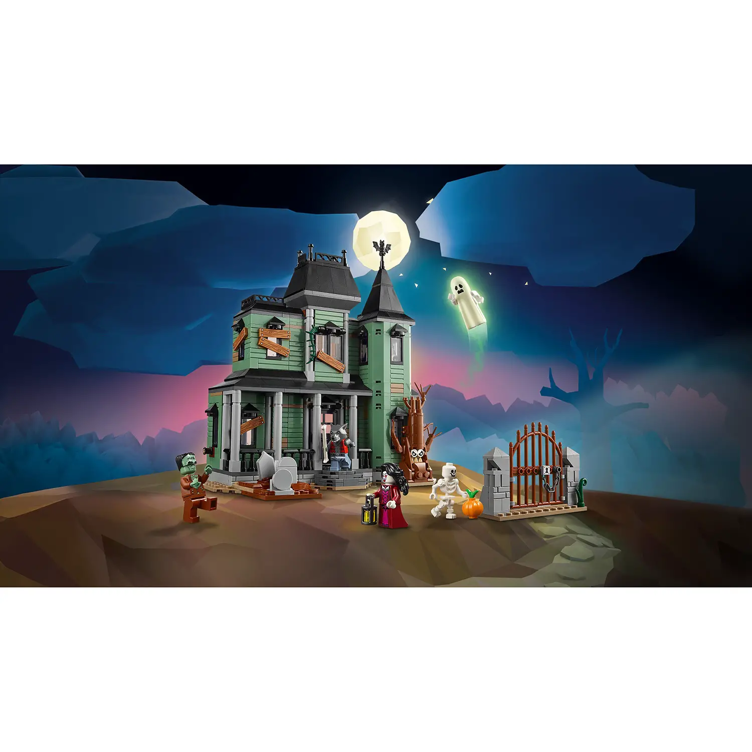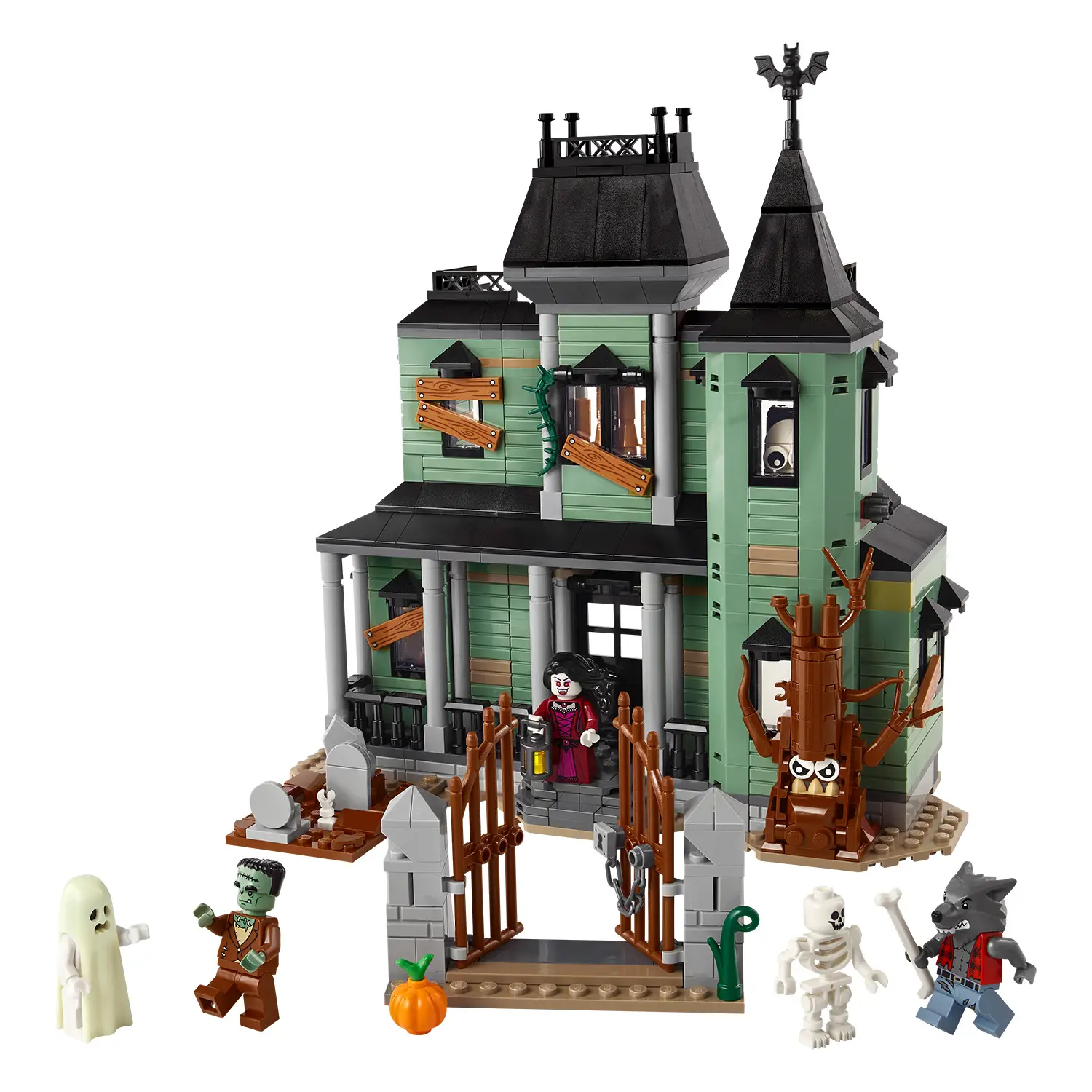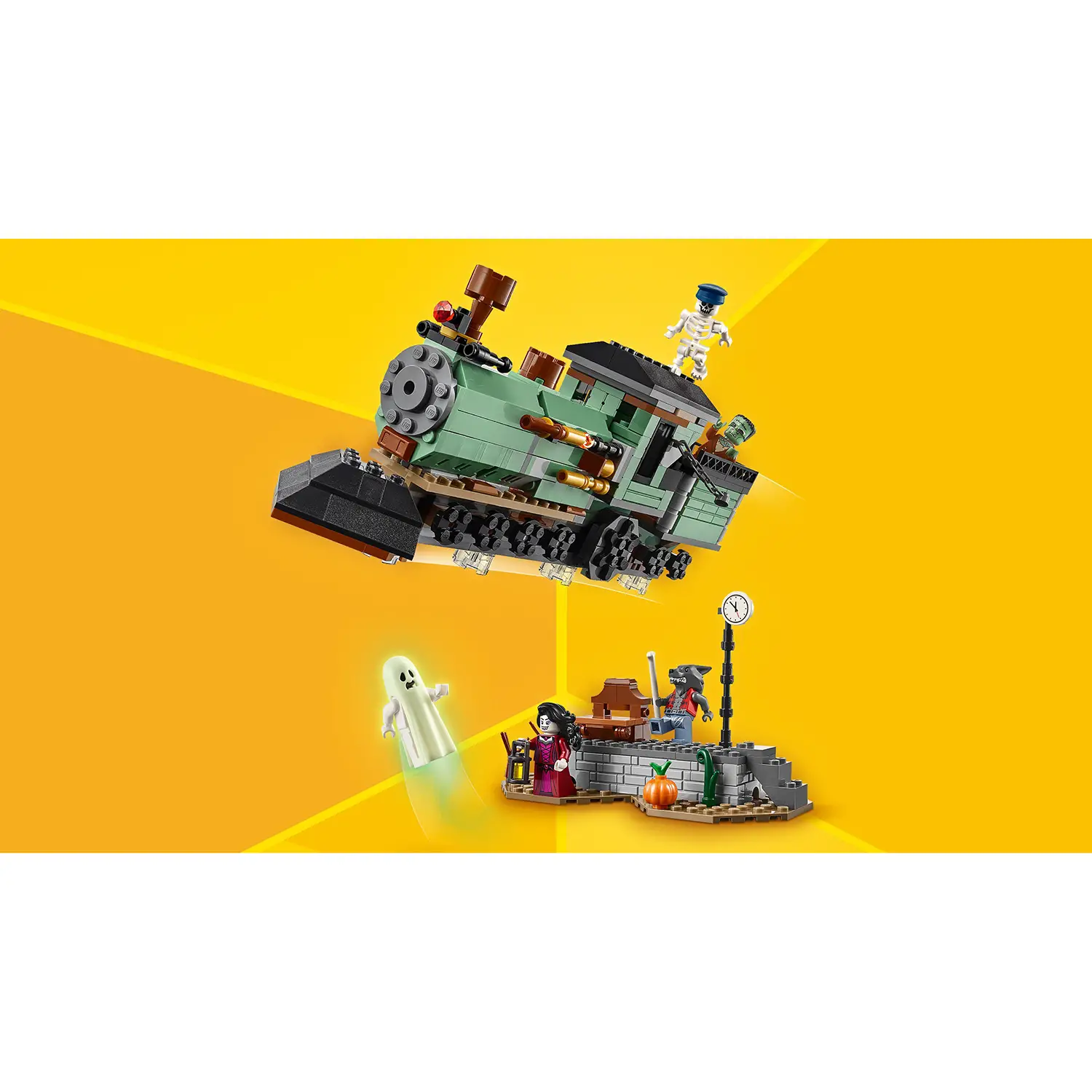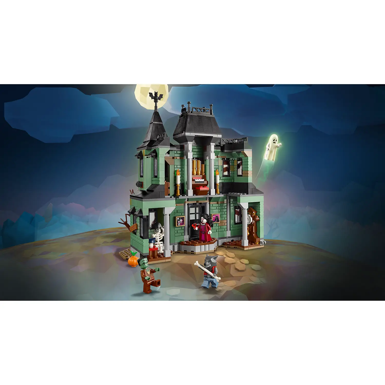 5 minifigure spaventose – Inclusi un lupo mannaro, un vampiro, un fantasma con mantello fosforescente, il mostro di Frankenstein e uno scheletro, ognuno con accessorio.
