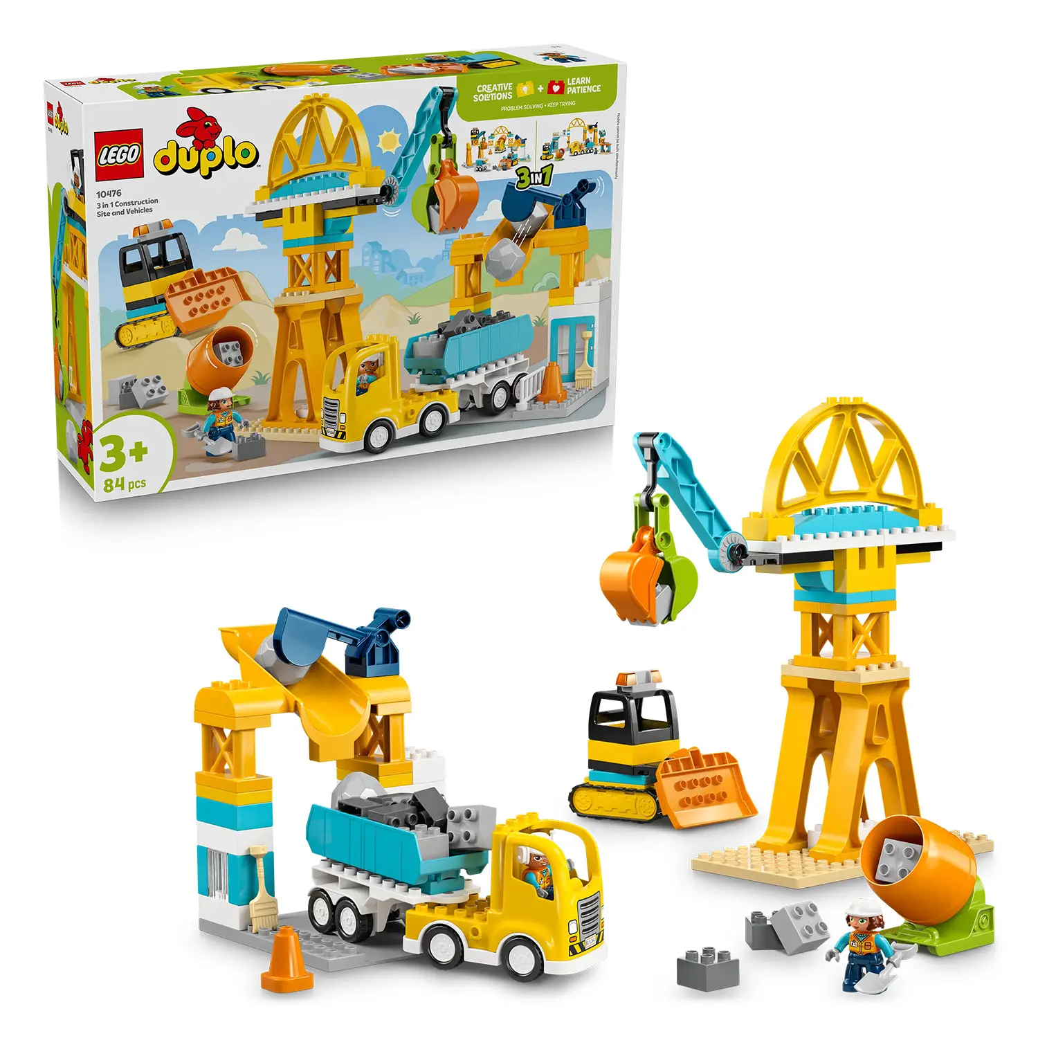 Gioco didattico per bambini 3+ LEGO DUPLO 10476 Cantiere e Veicoli 3 in 1 è un gioco educativo progettato per bambini e bambine dai 3 anni in su, ideale per esplorare il mondo del cantiere attraverso costruzioni creative e attività manuali coinvolgenti.
