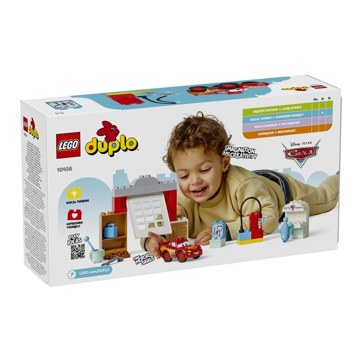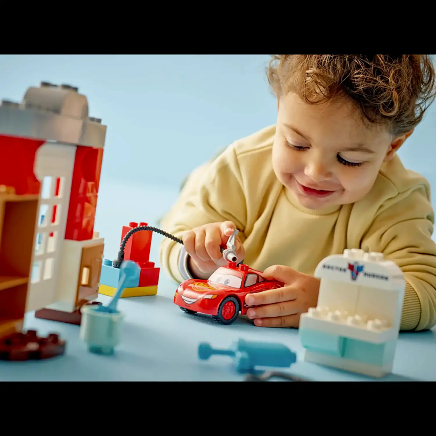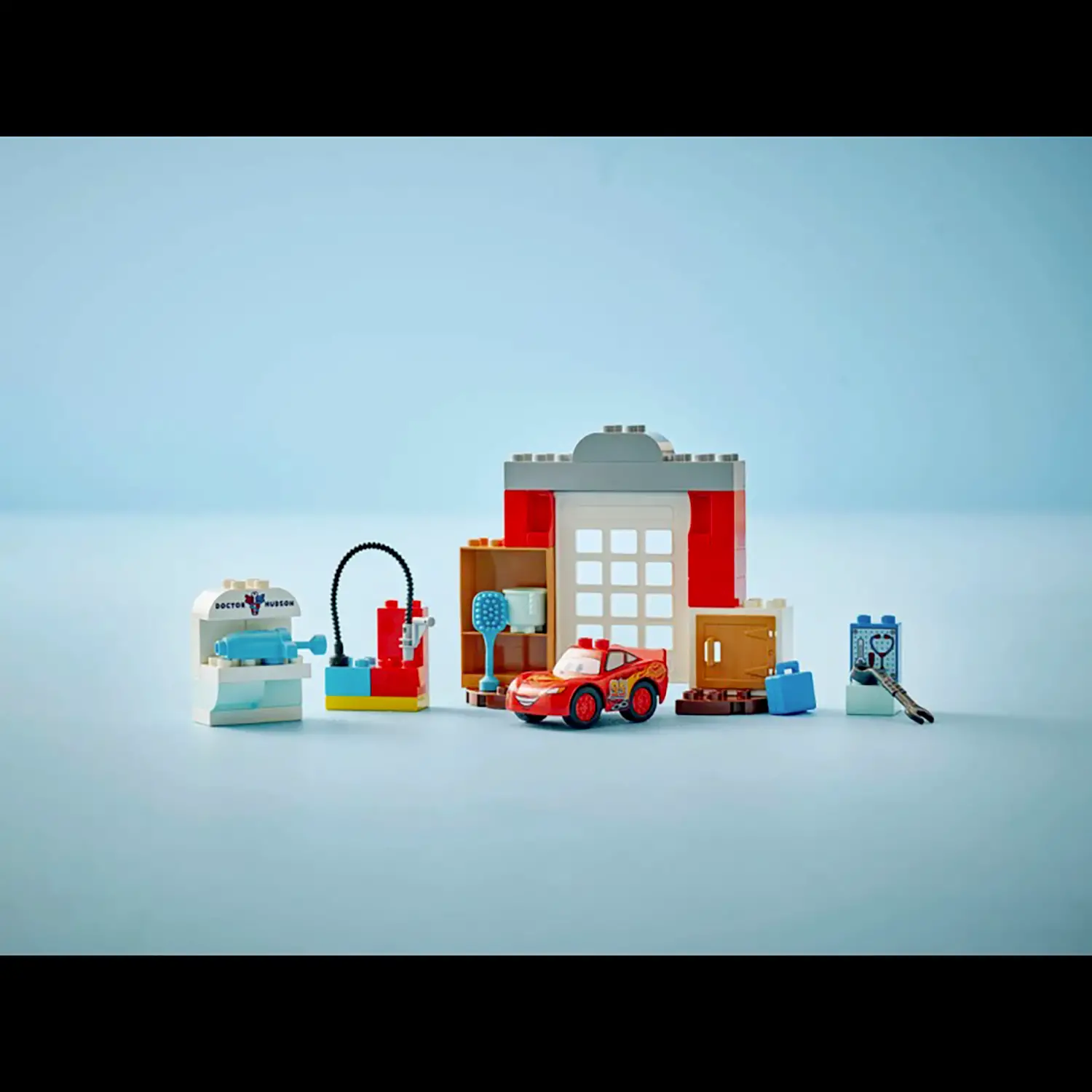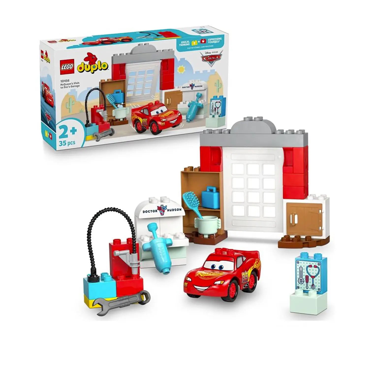 An all-build workshop for little Cars fans! - With the set McQueen's Visit to Doc's Workshop, preschoolers have fun making up stories like real mechanics. Inspired by the Disney and Pixar Cars movies, this LEGO® DUPLO® playset transports little ones into the world of racing with Lightning McQueen and Doc's iconic garage.