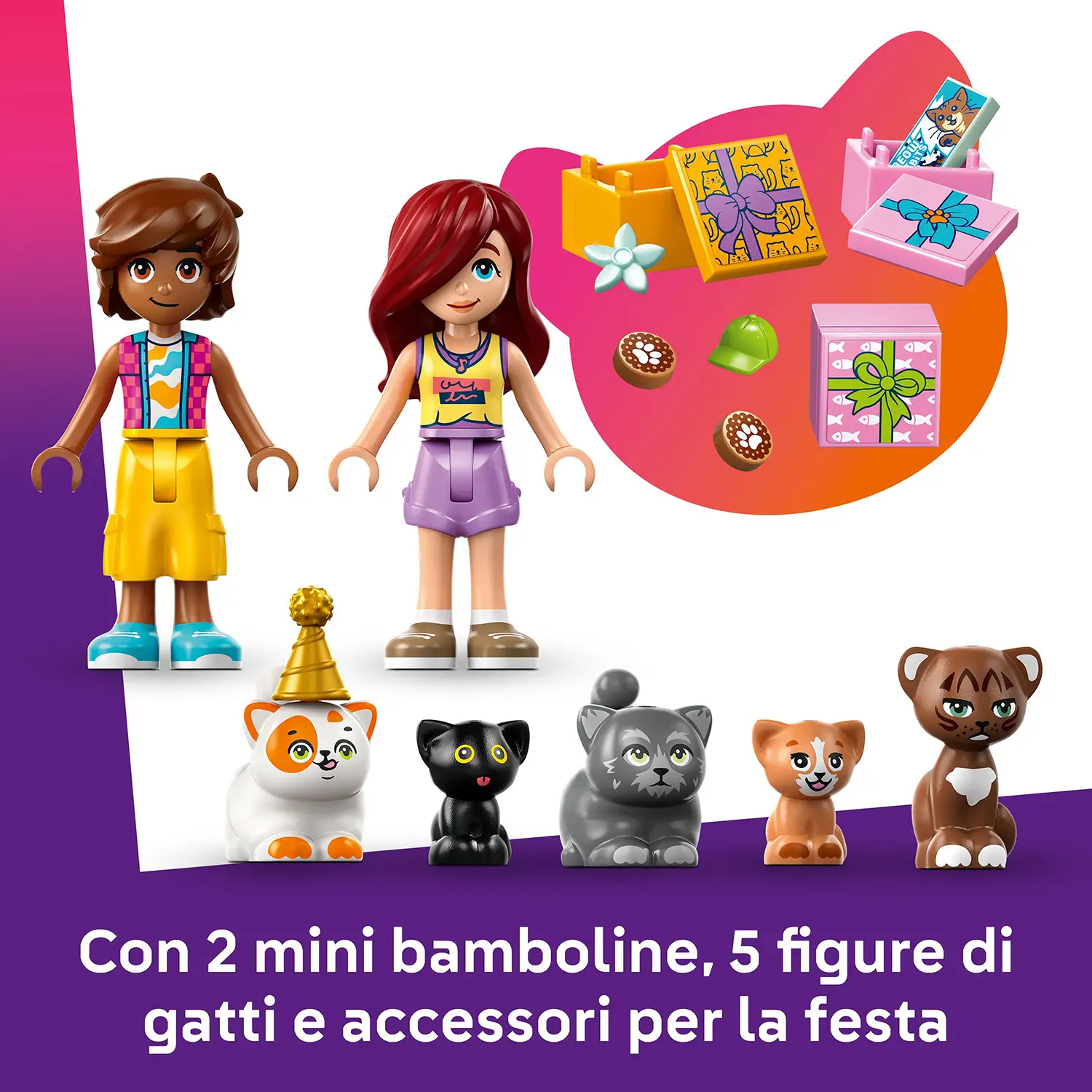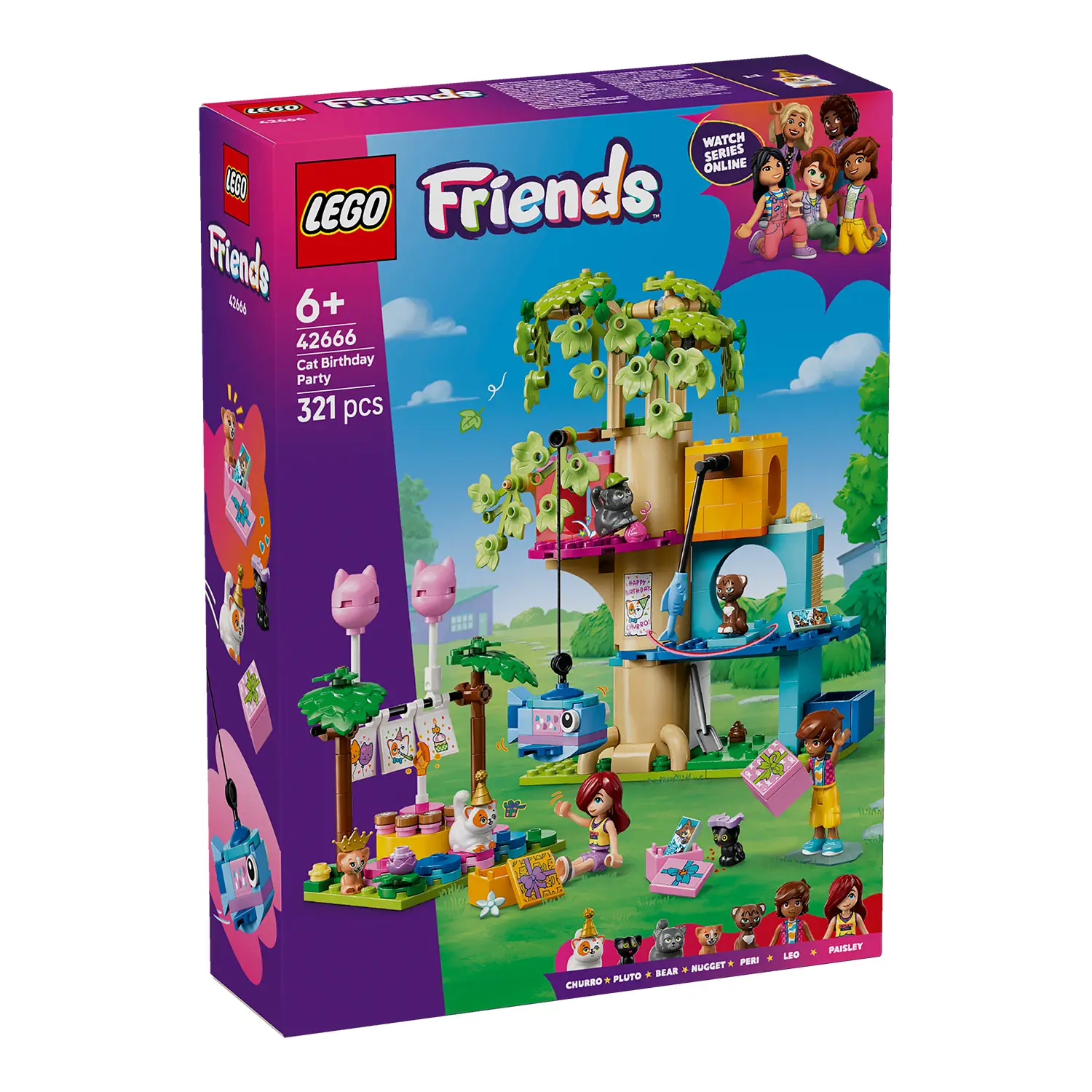 Festa di compleanno a tema felino Celebra il compleanno di Churro con questo set LEGO Friends 42666 ricco di dettagli e personaggi. Include una casa sull’albero, 2 mini bamboline, 5 gatti e tantissimi accessori a tema.