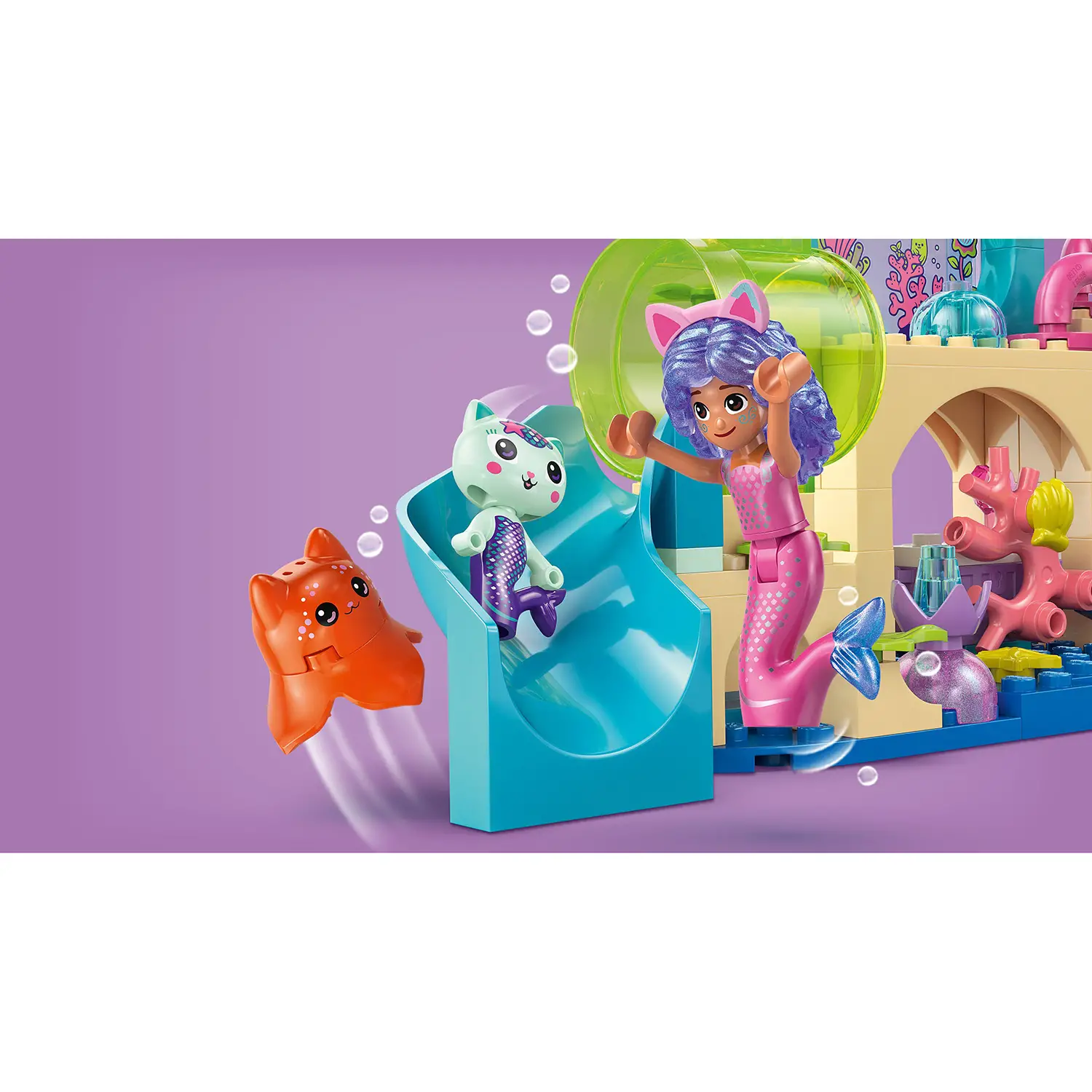 Perfetto per ricreare il film di Gabby i piccoli possono riprodurre scene viste in Gabby’s Dollhouse - Il film o inventare nuove avventure sottomarine, sviluppando creatività, narrazione e capacità motorie.