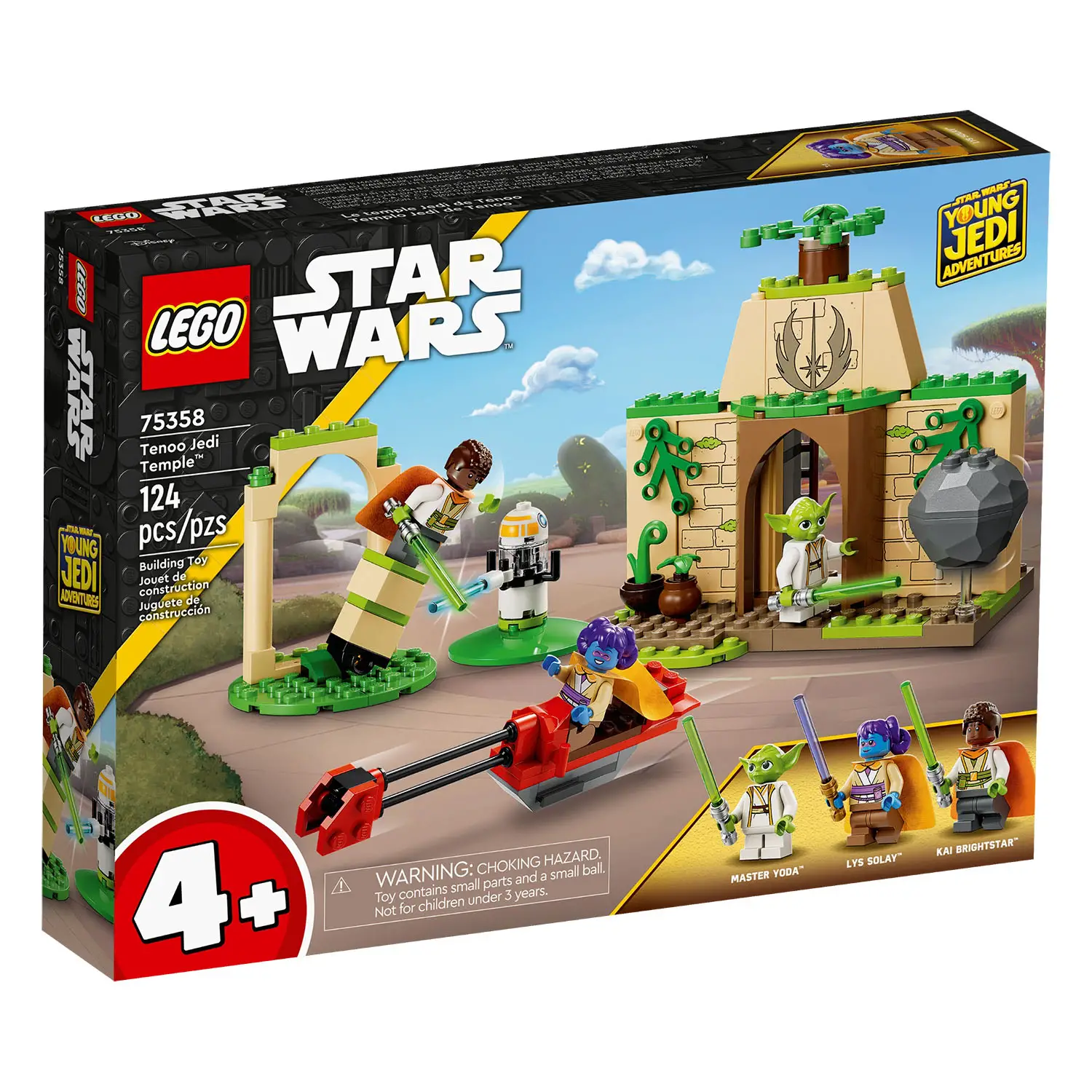 With this starter set of the Jedi Temple on Tenoo (75358), children ages 4 and up can have their first building and play experience in the LEGO Star Wars universe. The temple features a "levitating" rock feature and detailed interior with many play features. Also included are a training droid, a balance test for Jedi training, and a speeder bike. This set is a fantastic gift for fans of Star Wars: Young Jedi Adventures and includes the new LEGO minifigures of Lys Solay and Kai Brightstar, new for June 2023, as well as a LEGO minifigure of Master Yoda.