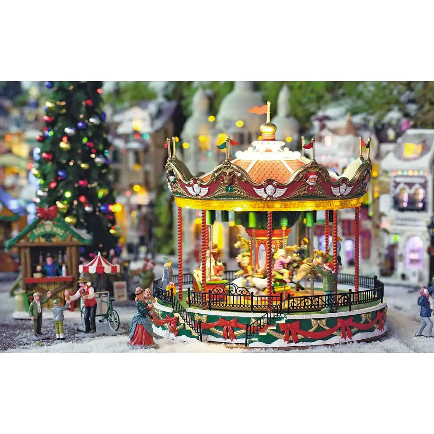 Porta la magia delle fiere nel tuo villaggio Lemax con la Santa Carousel. Questa autentica giostra in miniatura offre movimento rotatorio e musica festosa, trasformando il tuo villaggio natalizio in un’attrazione incantata per grandi e piccini.