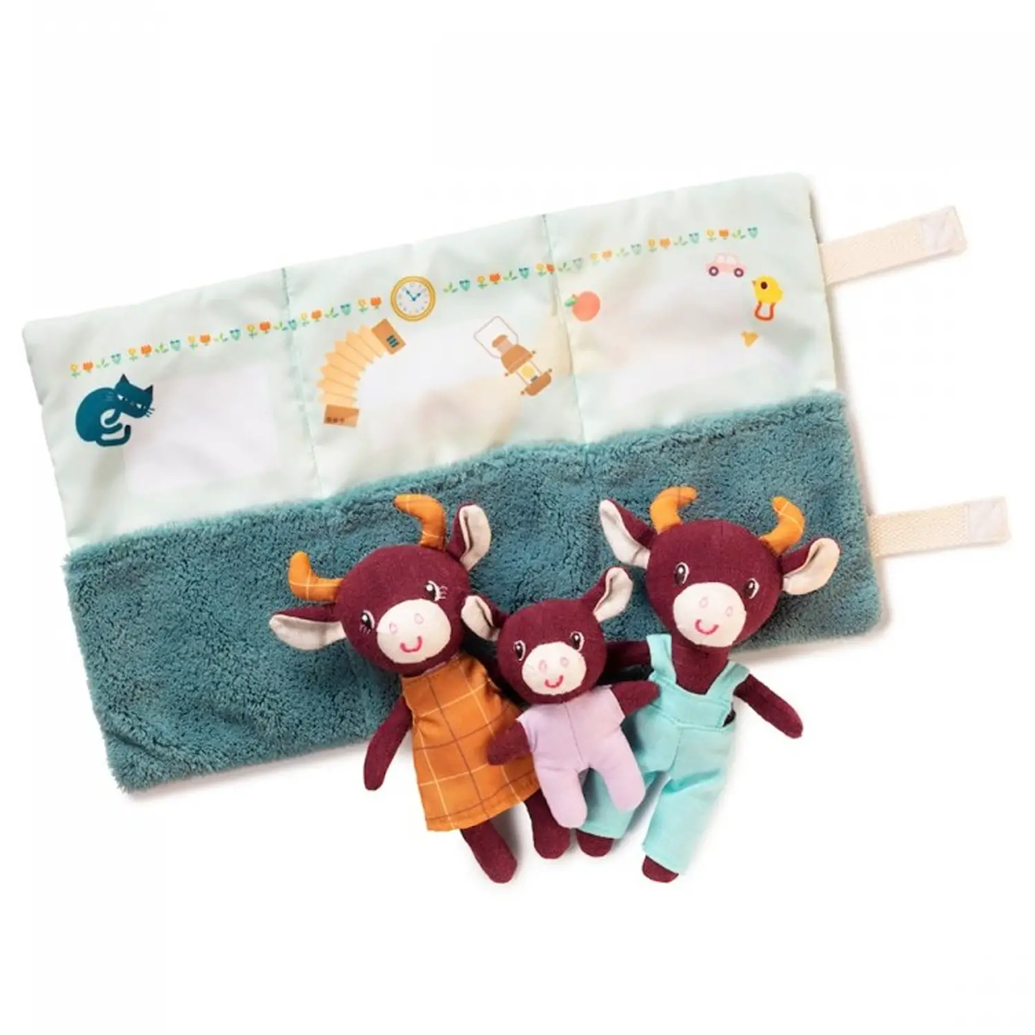 The Rosalie Cow Family is a set of characters and accessories that gives children the opportunity to create engaging adventures and stories in the world of the farm. This set includes a mama cow, daddy cow and baby Rosalie, each of whom can be dressed and undressed thanks to their removable outfits. The set is complete with a rug that serves as a backdrop for the cow family's adventures.