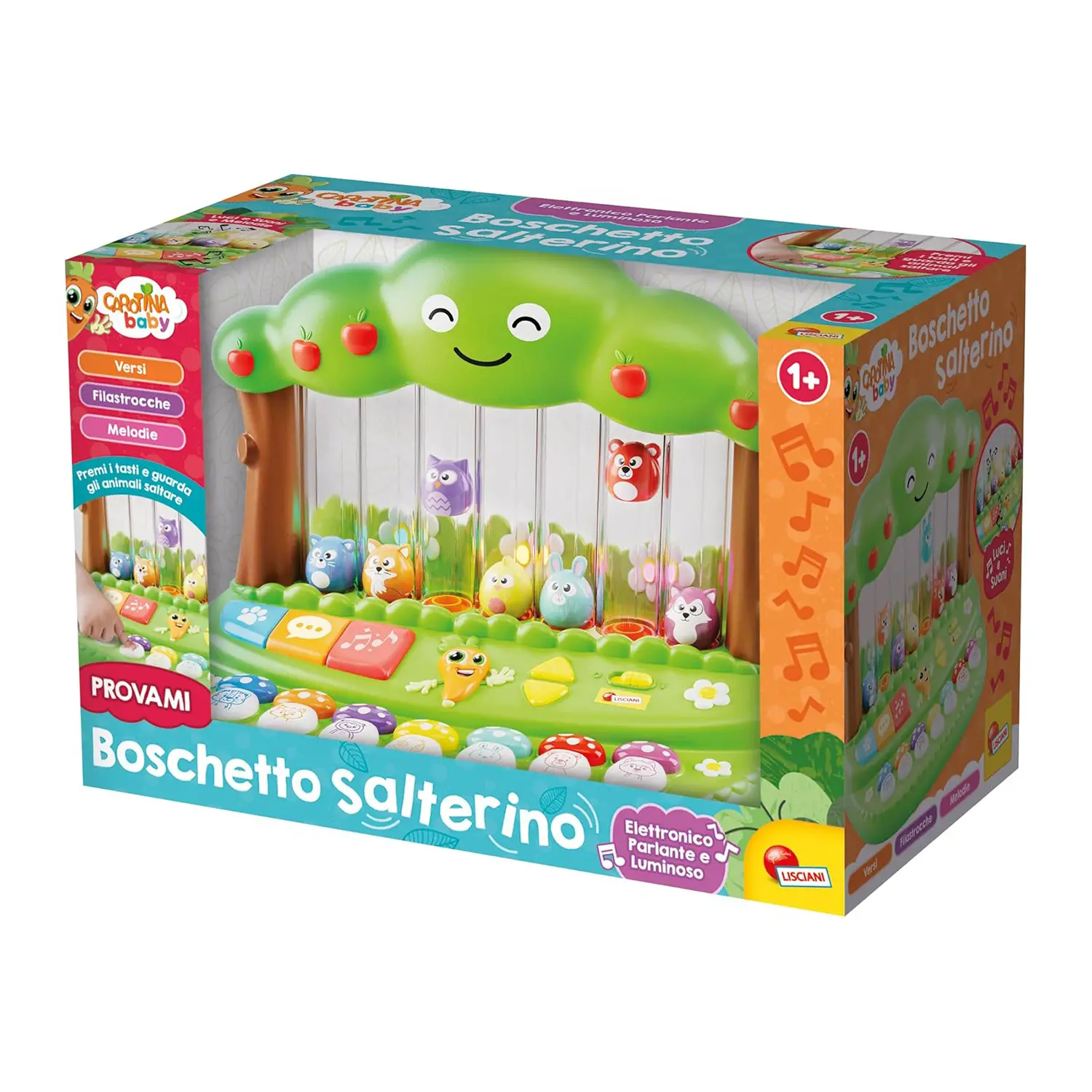 Bosco Interattivo Luminoso ed Educativo Il Boschetto Salterino Carotina Baby è un gioco elettronico ricco di colori, suoni e movimenti, pensato per stimolare i sensi e le abilità dei bambini dai primi mesi di vita.