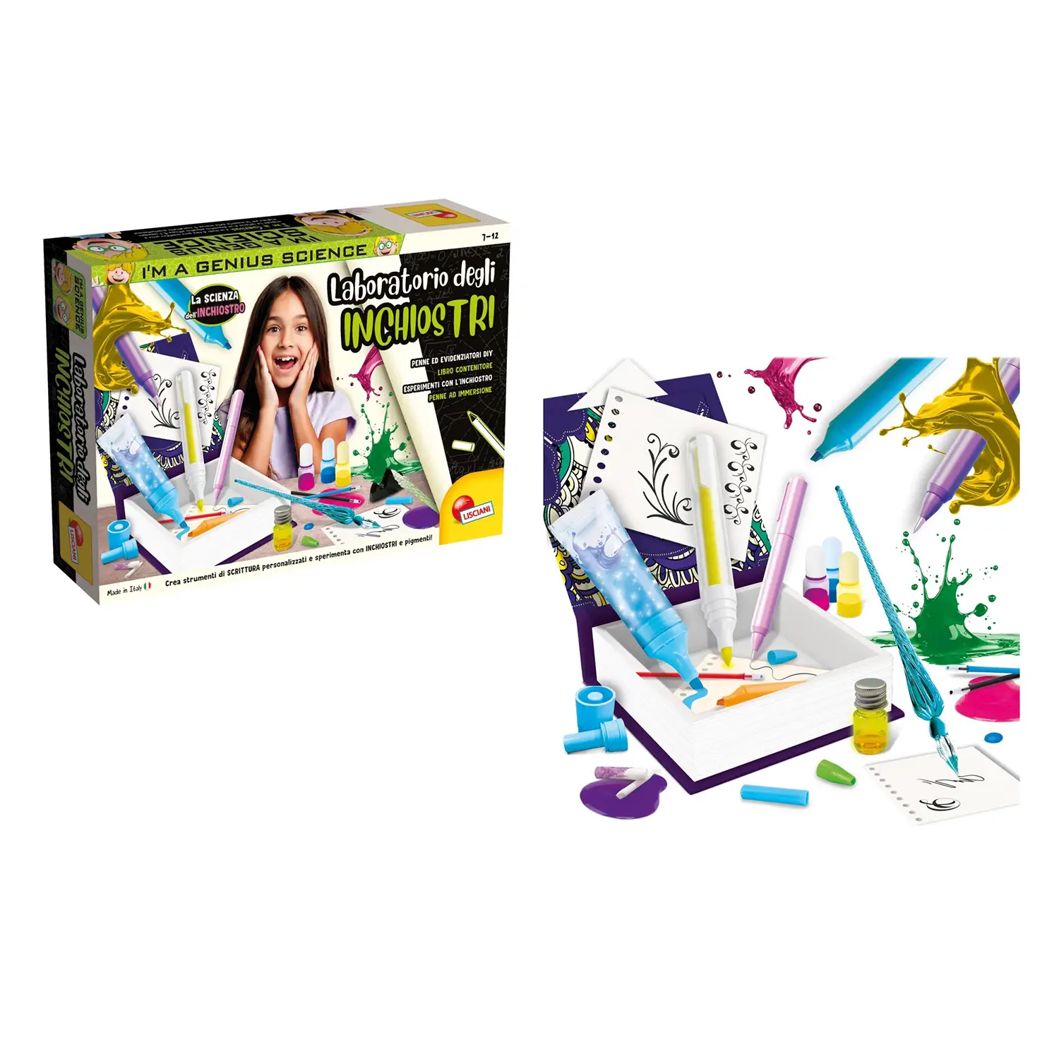 Create personalized pens and inks I'm A Genius - Ink Lab is a creative and scientific kit that allows children to make unique writing instruments while experimenting with pigments, colors and scents.