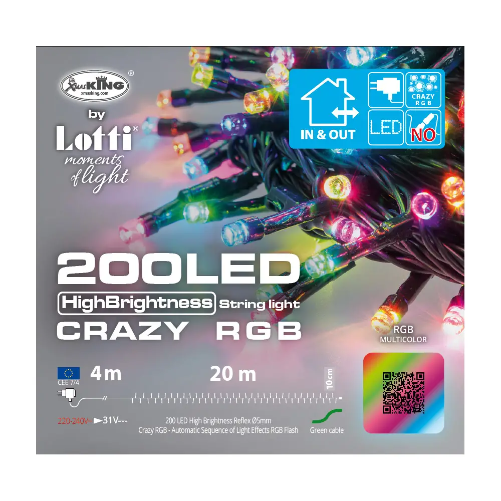 Luci di Natale Lotti - Catena Crazy RGB 200 Led Multicolor - Filo Verde da 20 metri