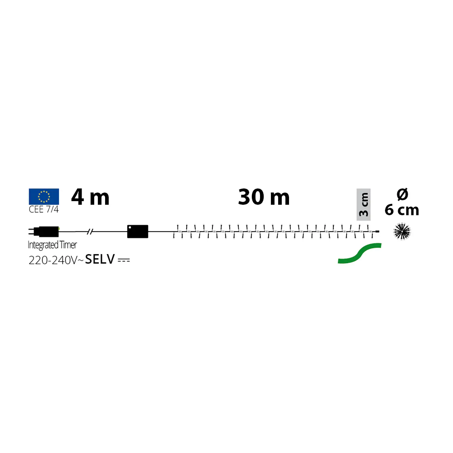 - ✅ 30 m di luci + 4 m di alimentazione, con cavo verde IP44