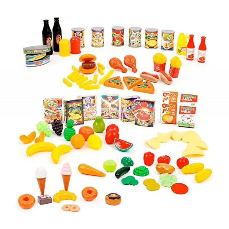- ✅ 100-piece toy food set with colorful foods in various shapes, ideal for imitation games in the kitchen.