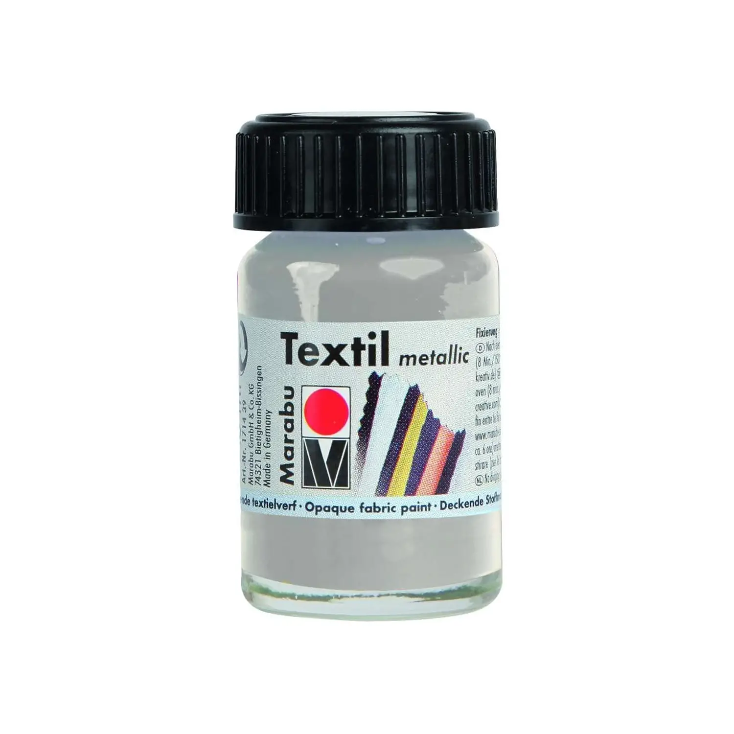 Aggiungi effetto metallico e brillantezza professionale ai tuoi tessuti con il Marabu Textil Colore per Tessuto Metallizzato Argento, ideale per pittura, stampa tessile, stencil e tecniche a spruzzo. La formula universale a base d’acqua permette facile applicazione, colori miscibili e diluibili, con risultati luminosi e duraturi anche dopo i lavaggi.