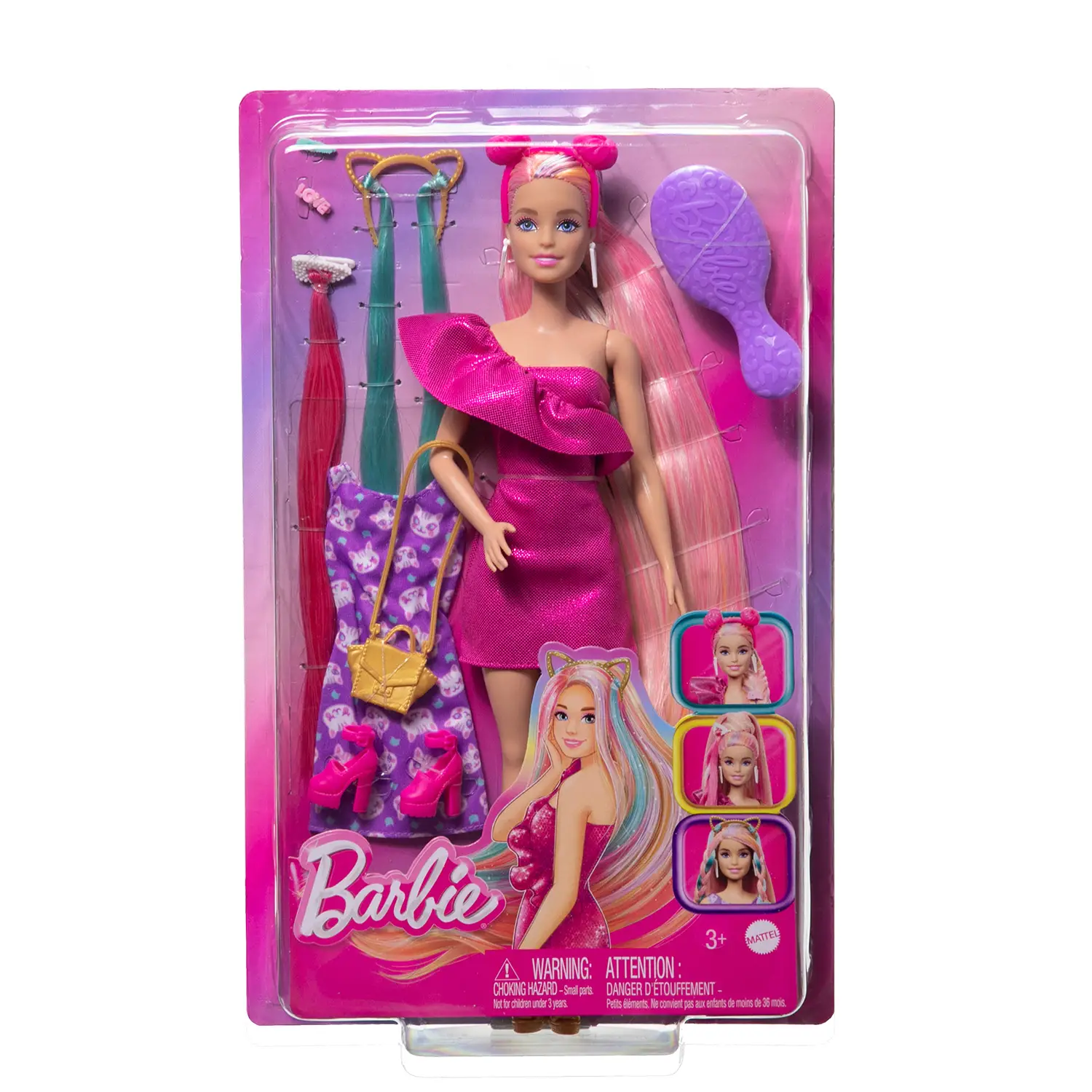 Gioco creativo e idea regalo Completa di spazzola per ricominciare lo styling tutte le volte che si vuole, Barbie Fun & Fancy Hair è perfetta per ore di gioco creativo. Un’idea regalo ideale per chi ama moda, capelli e sperimentazione di nuovi stili.