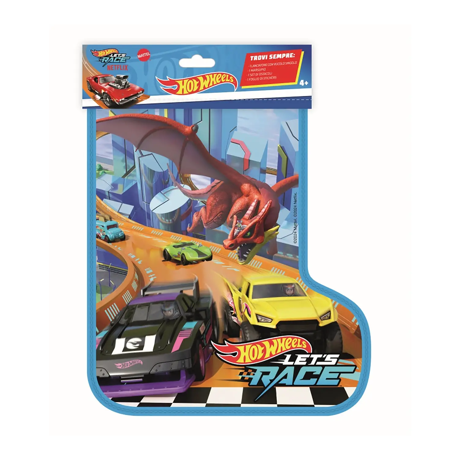 Caratteristiche principali: - Contenuto: Include adesivi personalizzabili e una borsa Hot Wheels. - Design accattivante: Tema “Let’s Race” con personaggi e veicoli iconici di Hot Wheels. - Perfetta per il 2025: Una calza pensata per divertirsi e celebrare il Natale con stile. - Età consigliata: 4+ anni.