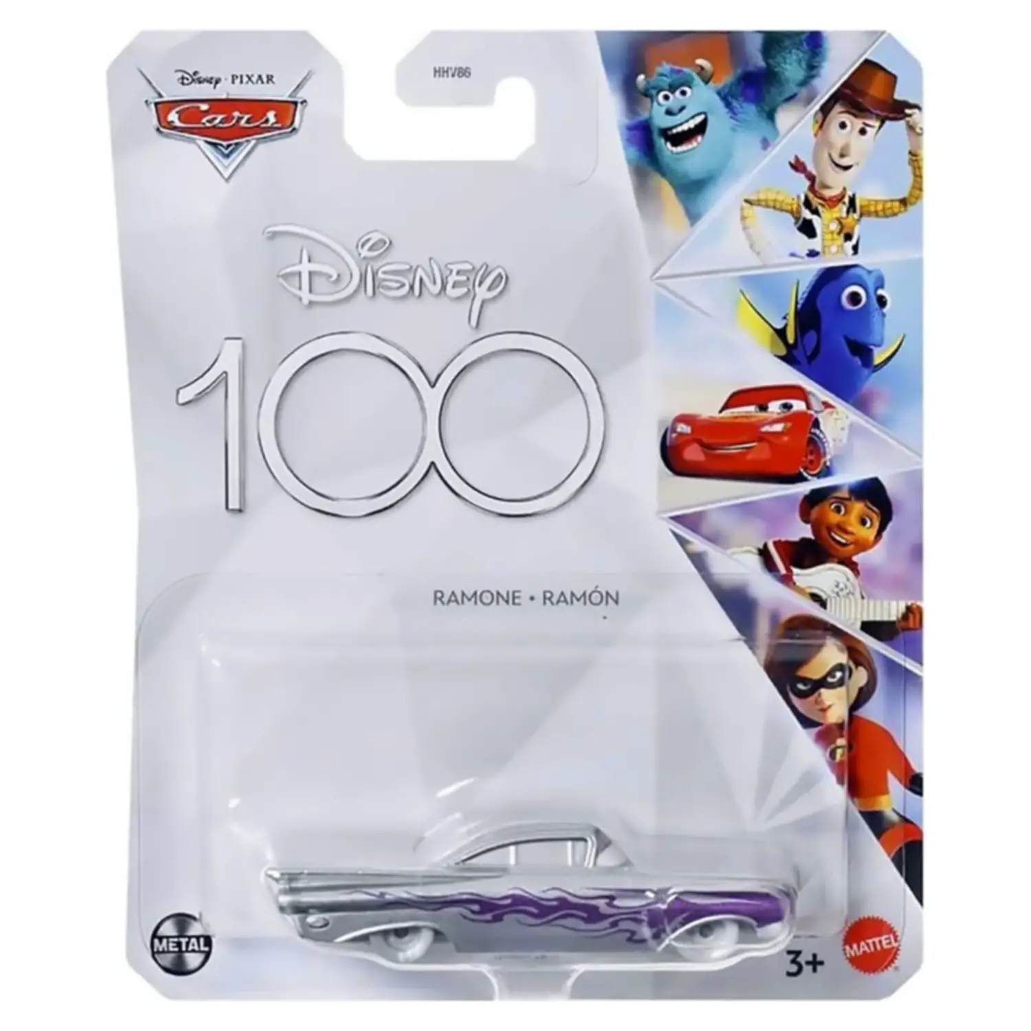 To celebrate Disney's centennial, an exclusive limited edition of Ramone, one of the most beloved characters in the Disney Pixar Cars series, is presented. This 1:55-scale vehicle is made of die-cast metal and faithfully reproduces the design and details of the iconic silver Ramone.