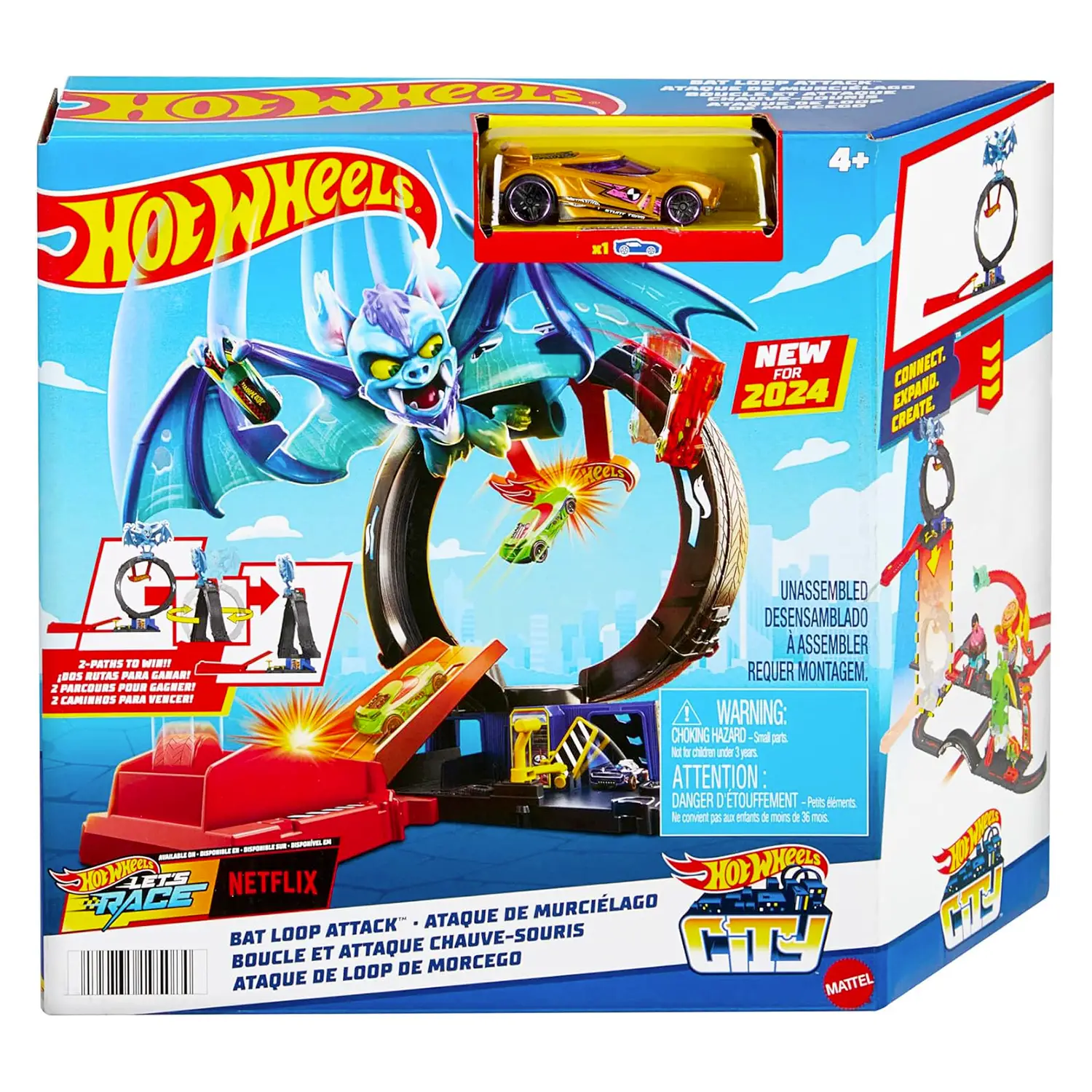 Colleziona e connetti per avventure infinite! Ispirato alla serie Netflix Let’s Race, questo set si collega ad altre piste Hot Wheels per creare circuiti personalizzati e storie sempre nuove. Con una macchinina inclusa, è il regalo perfetto per i piccoli appassionati di corse!