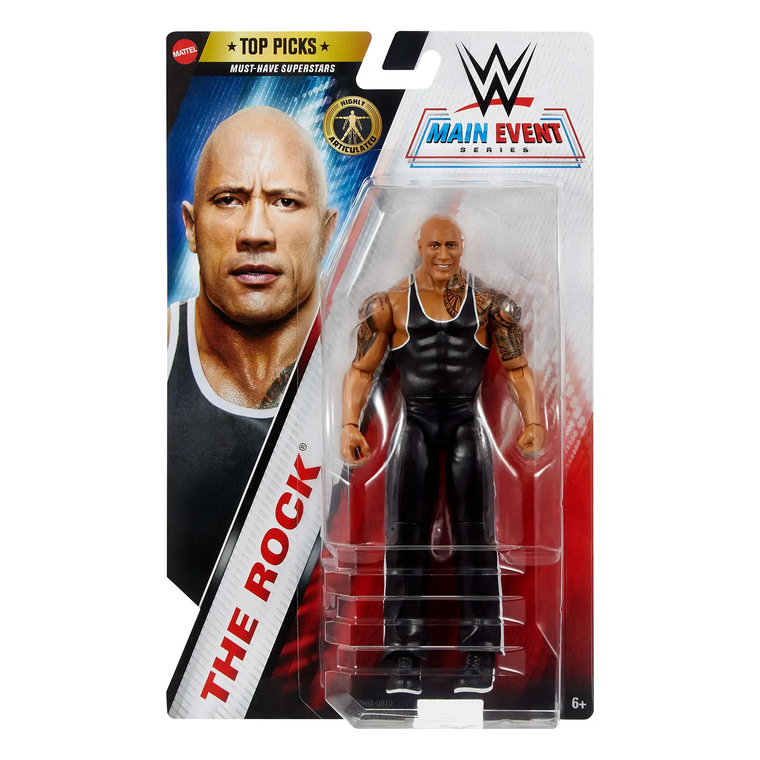 WWE The Rock Action Figure Top Picks Mattel 2026 porta sul ring tutta la potenza e il carisma del leggendario The Rock. Questa action figure ufficiale da 15,2 cm riproduce fedelmente la Superstar WWE più iconica di sempre, pronta per combattere match epici e dominare la scena del wrestling.