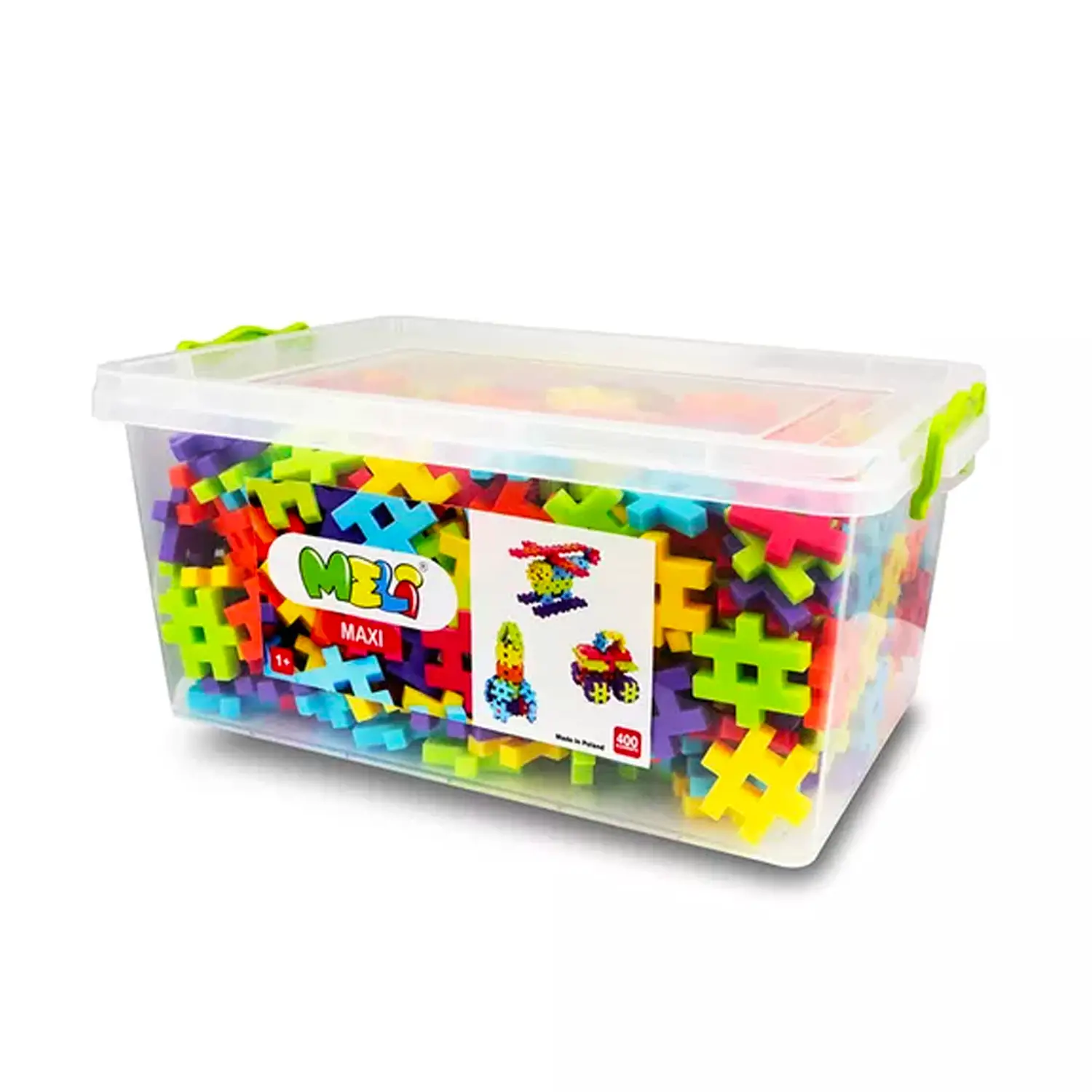 Gli elementi MELI MAXI sono pensati per i bambini a partire da un anno e garantiscono un divertimento stimolante ed educativo. I pezzi grandi mm 42x42 sono sicuri e facili da afferrare, favorendo lo sviluppo delle abilità manuali fin dalla più tenera età.