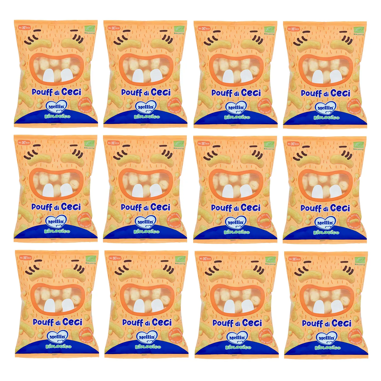 Mellin Snaks Mellin Chickpea Pouff gr.20 is a crunchy and light snack, ideal for little ones. Made with high-quality chickpeas, this snack offers a source of plant protein and fiber, perfect for a healthy and tasty snack.