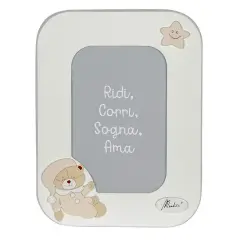 The sweet Mimi bear photo frame, made of delicate white lacquered wood, ideal for storing little ones' photos.