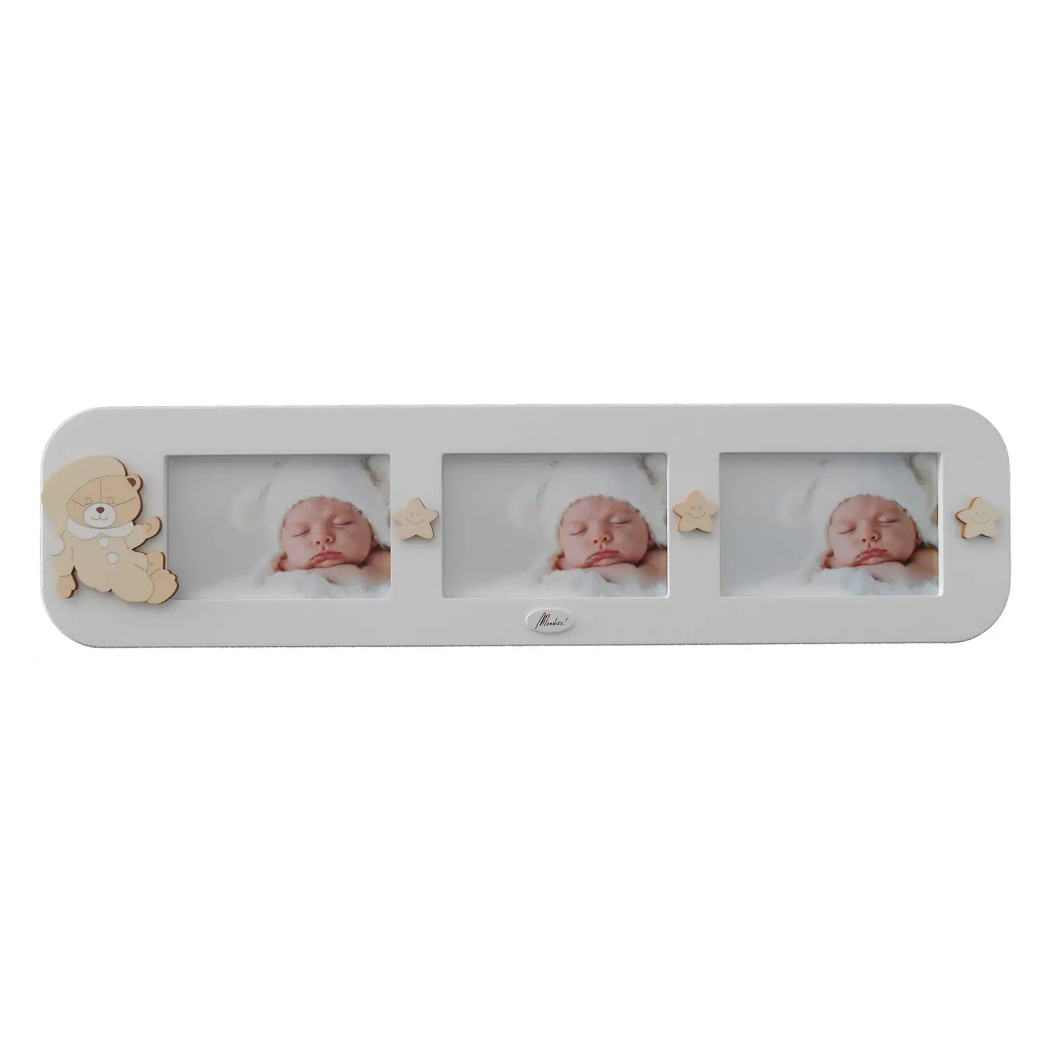 Cornice Portafoto per custodire le foto dei piccoli. Idea regalo Made in italy dal design sofisticato e delicato. Lavorazione 100% italiana Dimensioni: 60x15 cm