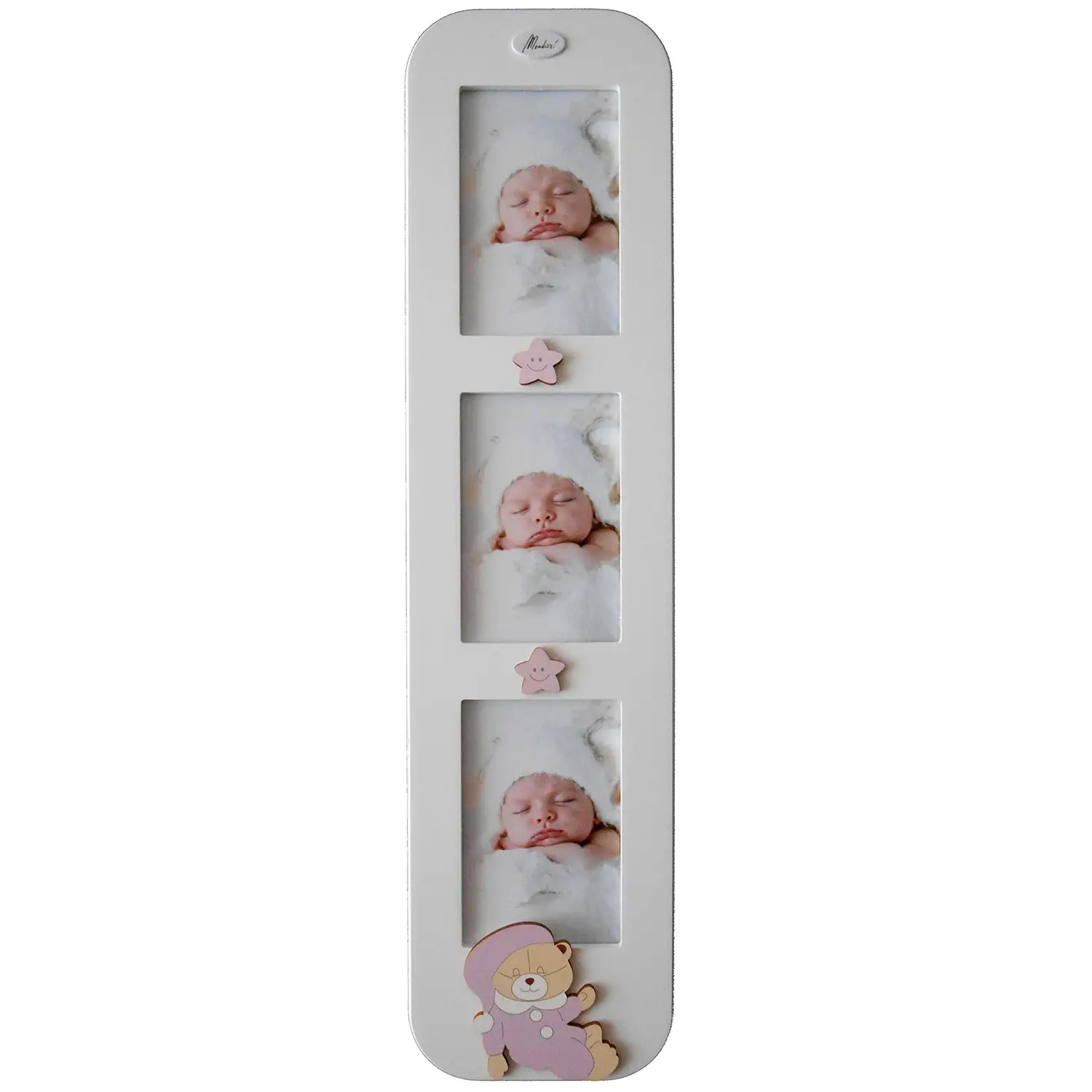 VERTICAL PHOTO FRAME 3 PHOTOS PINK BEAR
