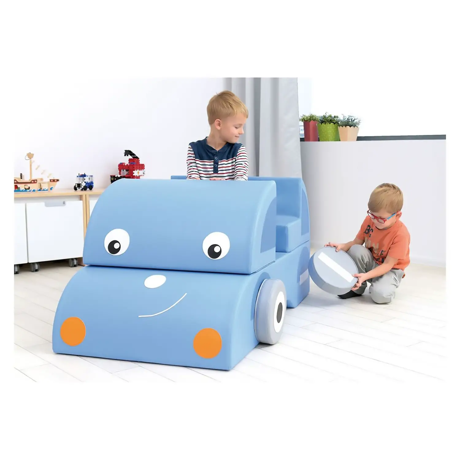 Il set di 15 elementi MOJE BAMBINO offre un’auto in morbido espanso, perfetta per il gioco creativo.