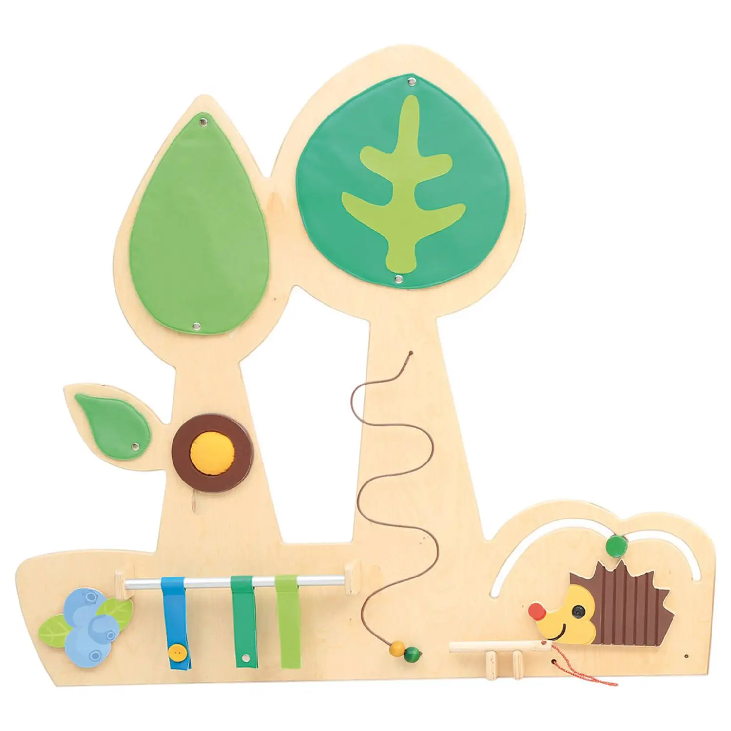 Pannello sagomato che riproduce un bosco e che dispone di diverse attività per la pratica di giochi che sviluppano e stimolano la destrezza manuale e il coordinamento occhio-mano, il riconoscimento cromatico, la percezione tattile: specchietti, sacchetti sensoriali, sticks sonori, parti mobili e percorsi, diverse superfici tattili.