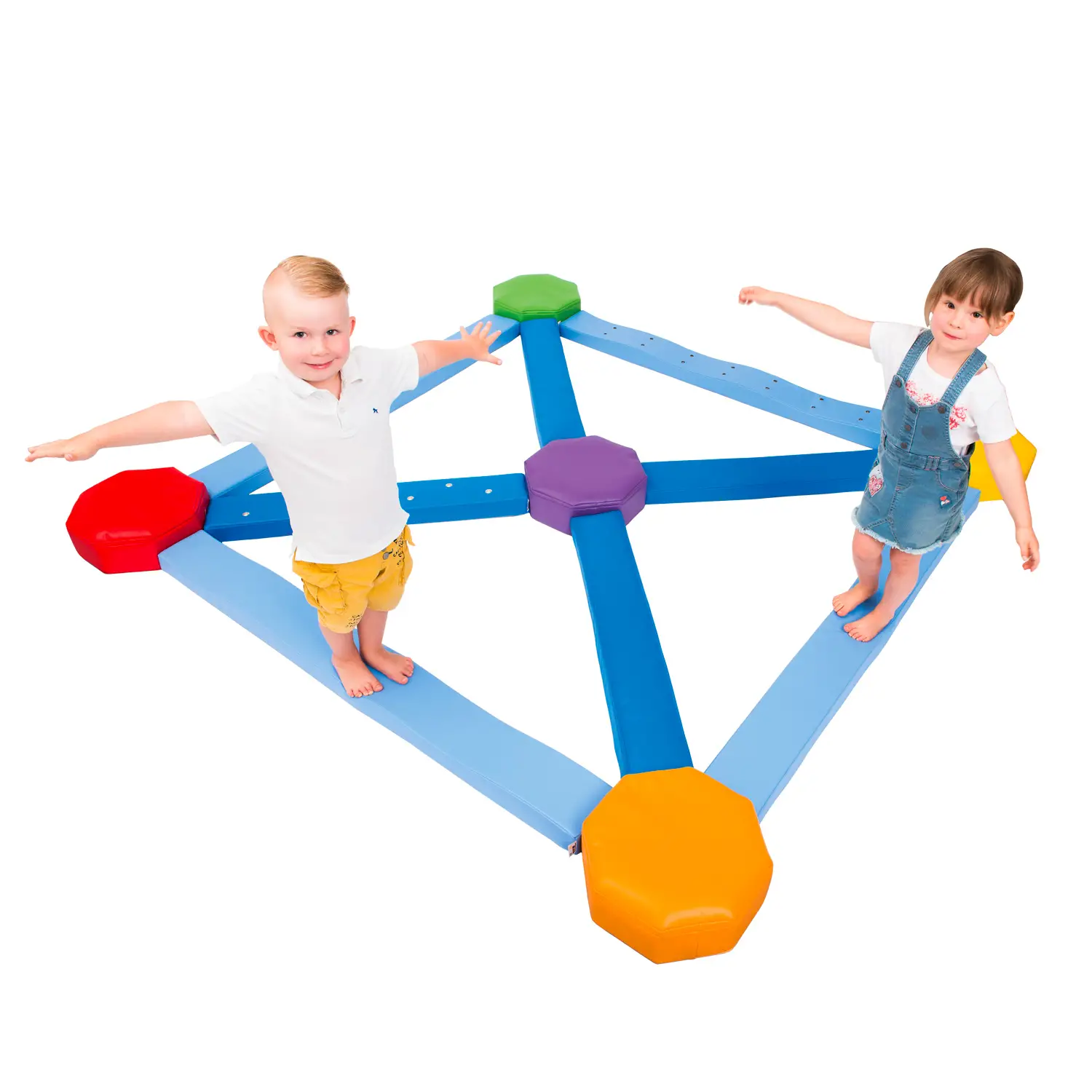 Qeusto set è studiato per supportare lo sviluppo del senso dell’equilibrio, delle capacità di corodinamento e della percezione tattile. Gli elementi si differenziano per consistenza, tipo di imbottitura e grado di densità della spugna. Il set completo forma un quadrato, dove le passerelle sono collegate da piattaforme ottagonali dai colori vivaci ma che possono essere combinate in qualsiasi modo.