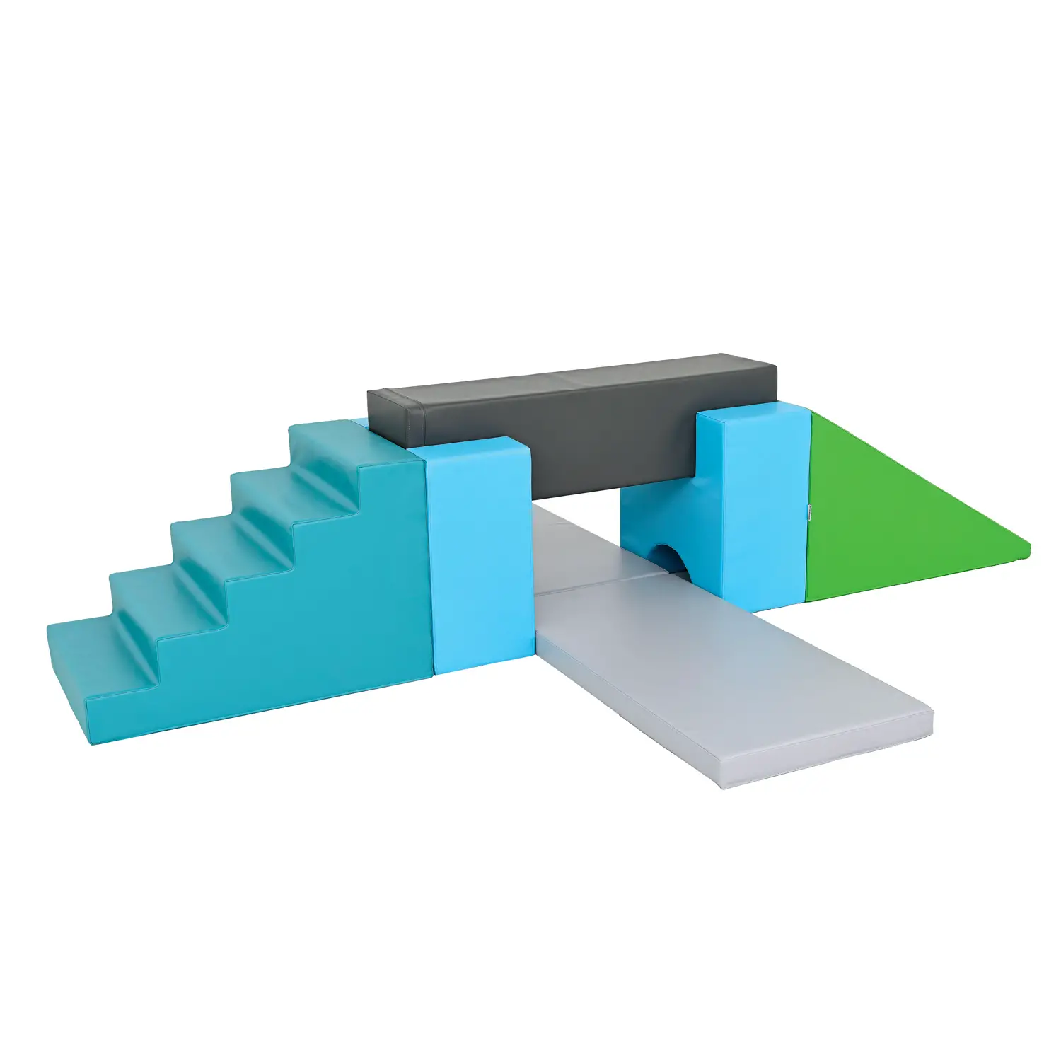 A fun path to jump, roll and stimulate balance. A safe and adventurous game for exploring and hiding, swinging, somersaulting while forcing proprioception.