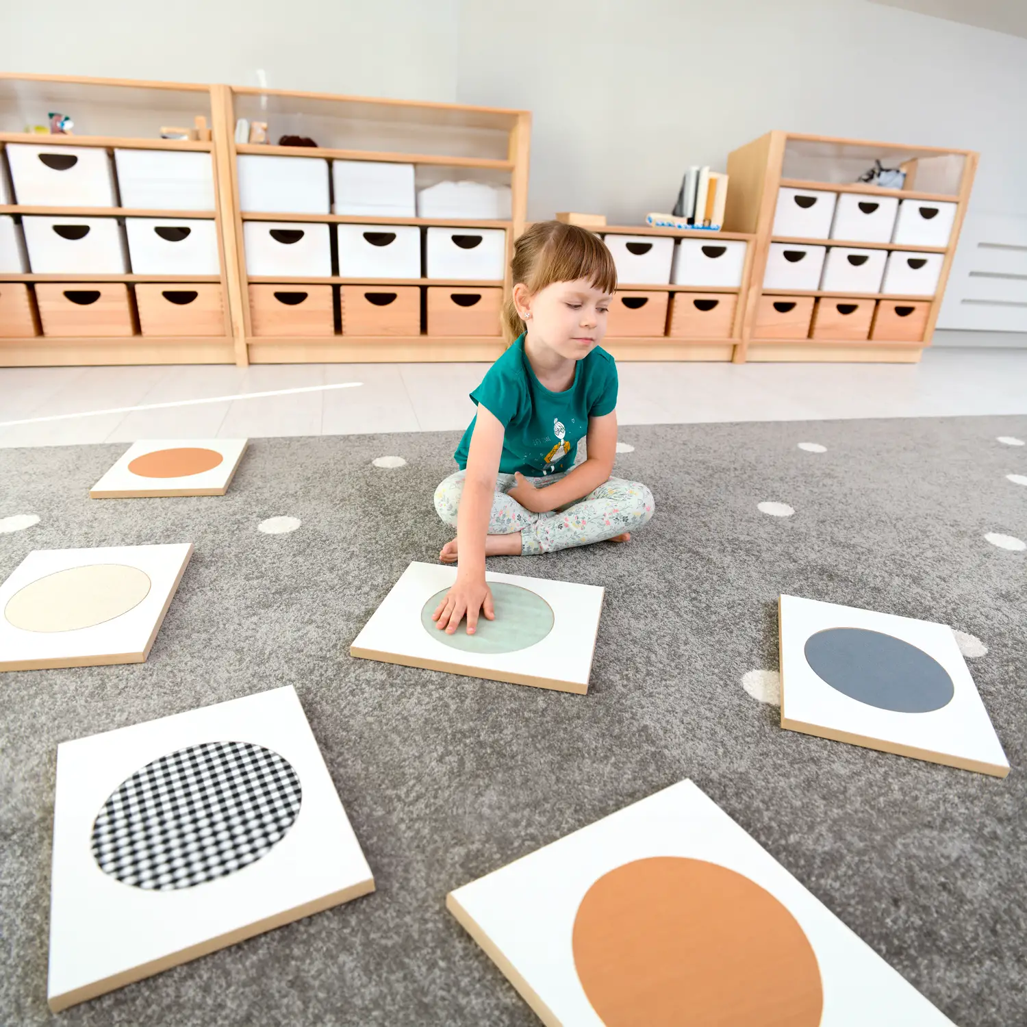 Ogni piastrella presenta una superficie differente, progettata per offrire una varietà di stimoli tattili – da superfici ruvide e lisce, a strutture spugnose, fibrose o solide.Materiali di Qualità