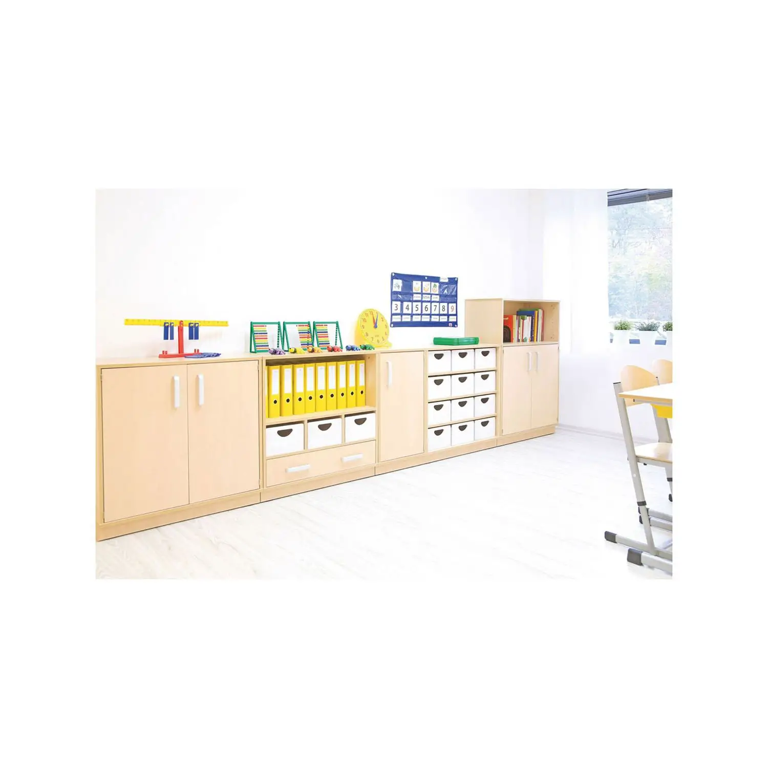 La nuova serie MOJE BAMBINO è perfetta per aule scolastiche. Realizzata in conglomerato ligneo da 18 mm, offre durabilità e sicurezza grazie ai bordi arrotondati e privi di spigoli.