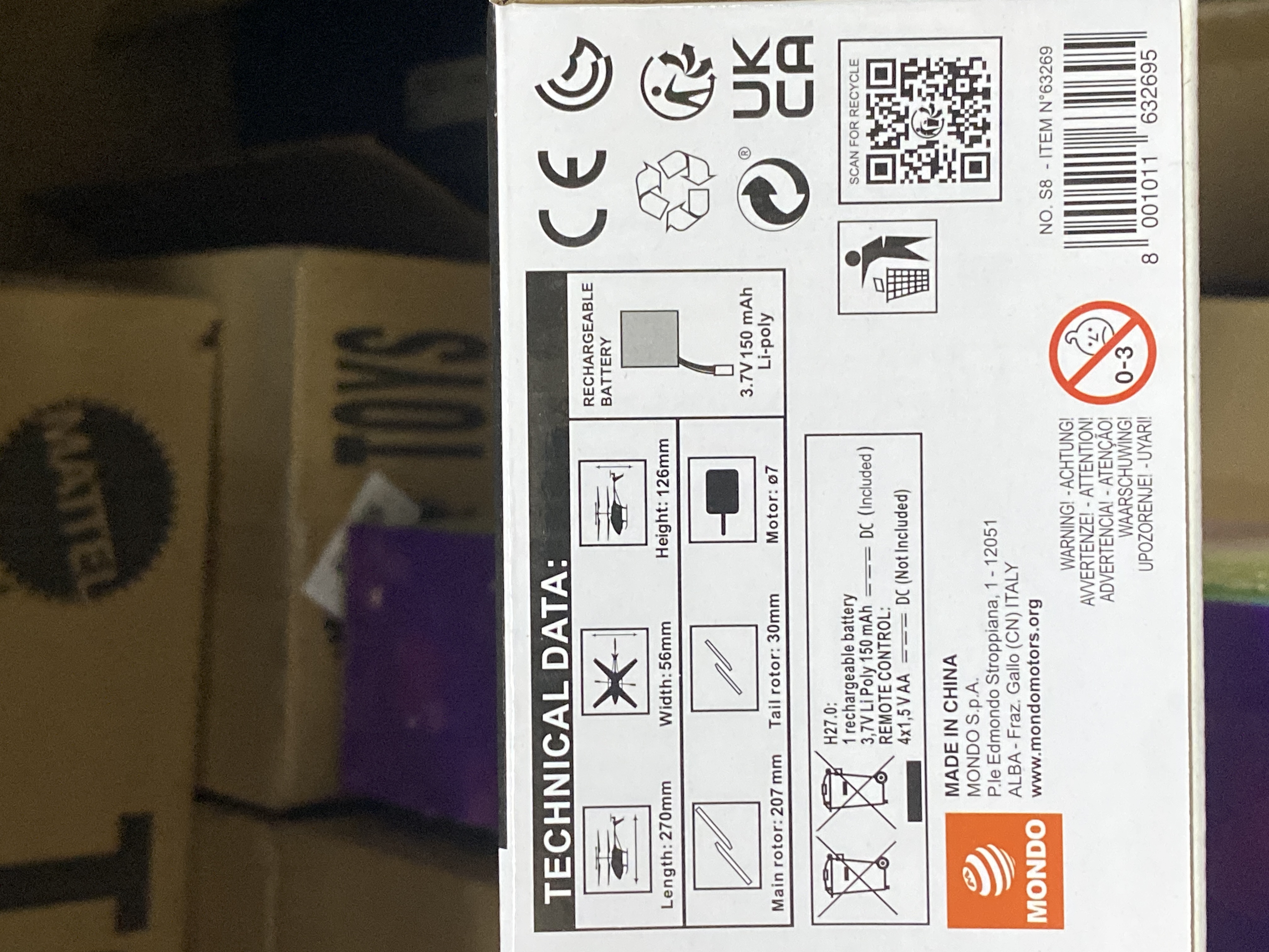 Fantastic infrared helicopter with 3 CH radio control. Built-in gyro technology for precise speed control and stability.