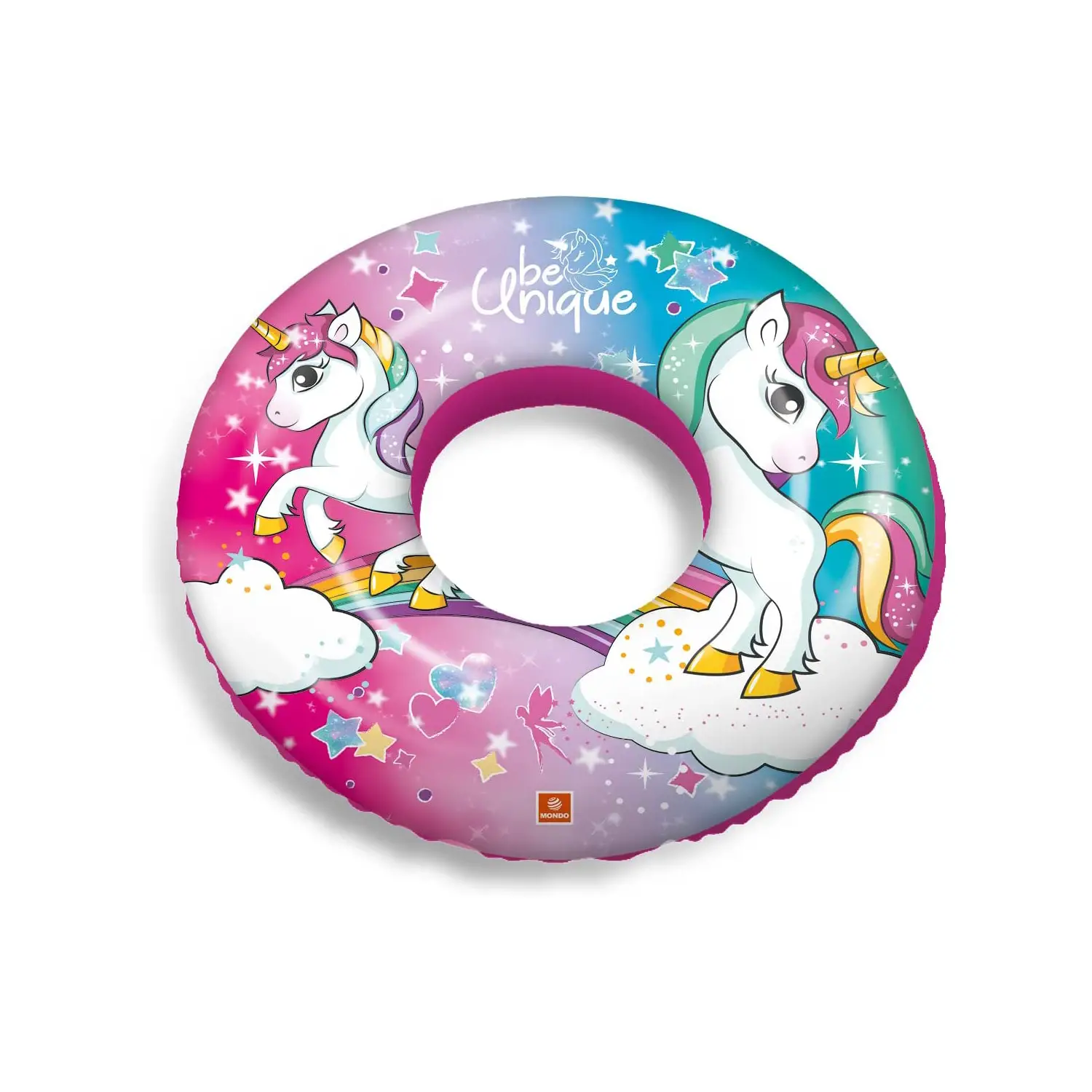 - Design Unicorno Colorato: Salvagente a forma di ciambella con grafica ispirata al celebre cartone unicorno, adorato da bambini e bambine.