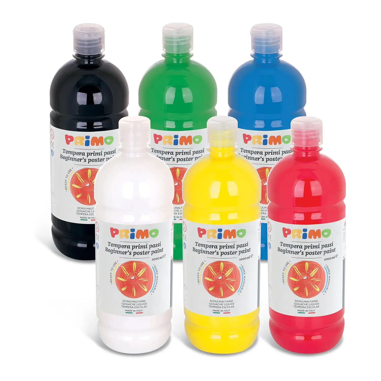 - ✅ Set with 6 1000 ml bottles in assorted colors: white, yellow, vermilion, primary blue, green, black, all gluten-free.
