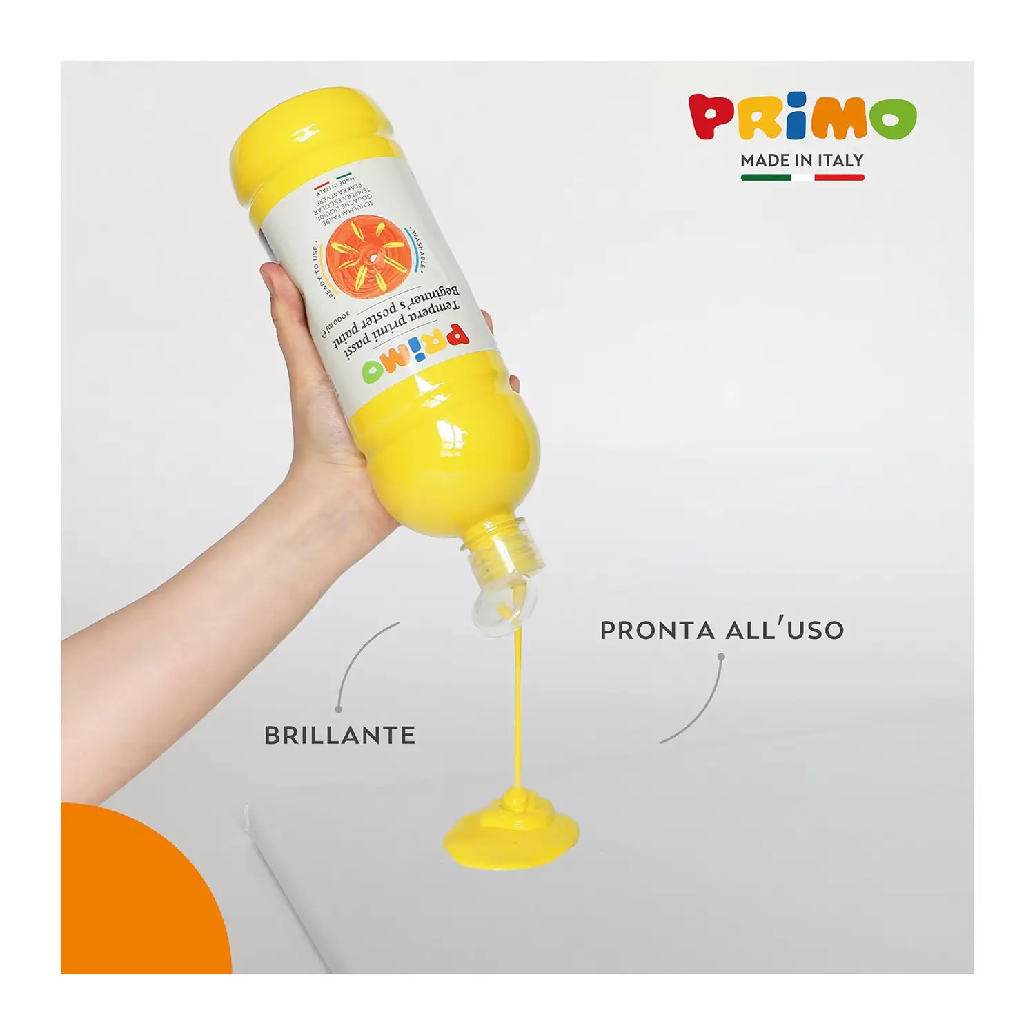 Primo's First Steps Ready Tempera is specially designed for children's first approach to painting. The colors are bright and water-based, contained in a bottle with a dispenser cap that allows for precise dosing and optimal storage. The tempera is easily washed off fabrics and skin, making the painting experience safe and worry-free.