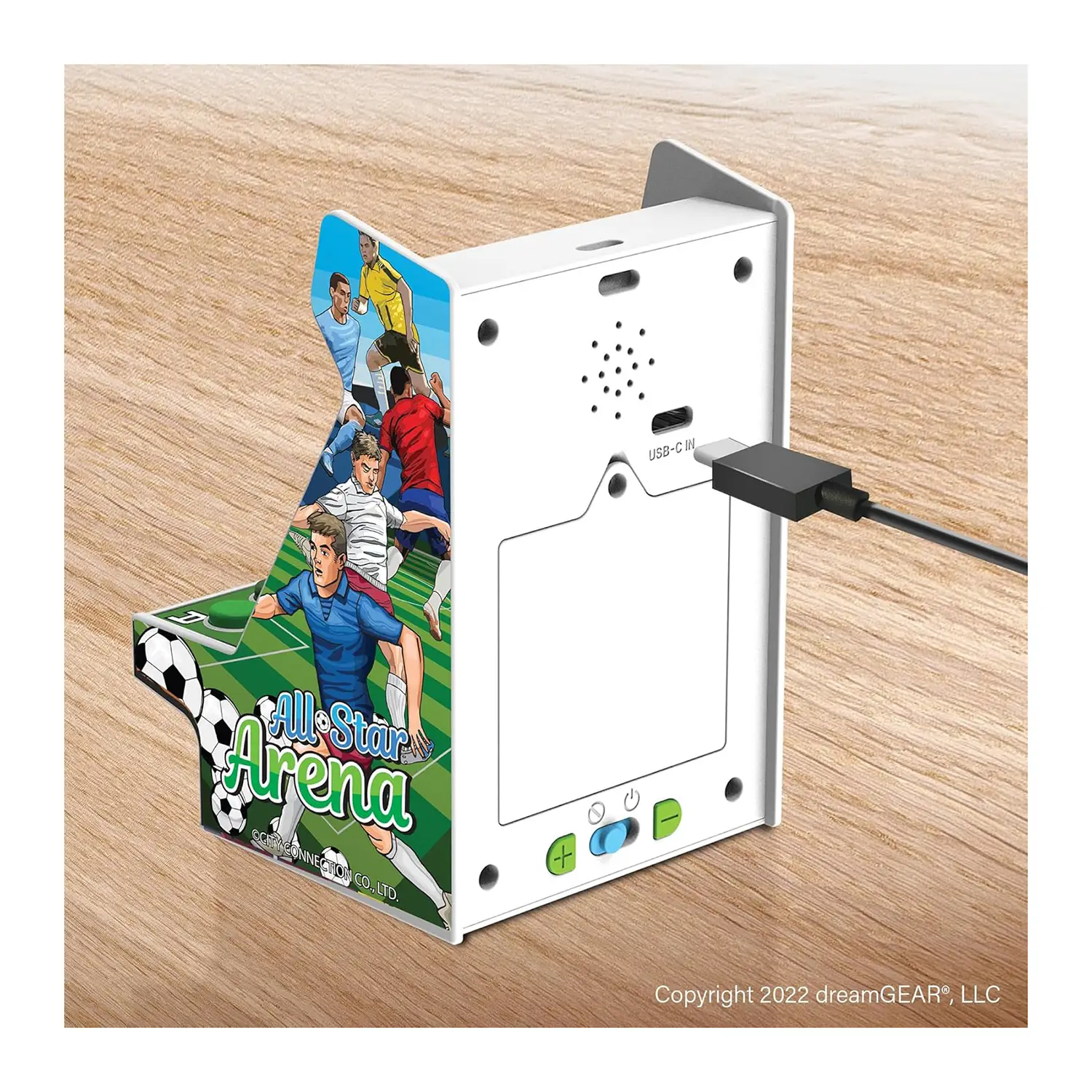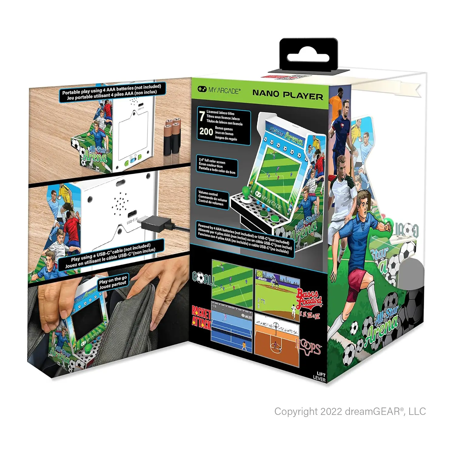 Design and Portability The All-Star Arena Nano Player offers a compact and portable sports design. Perfect for any game room, office, or storefront, this device captures the essence of soccer in a mini size.