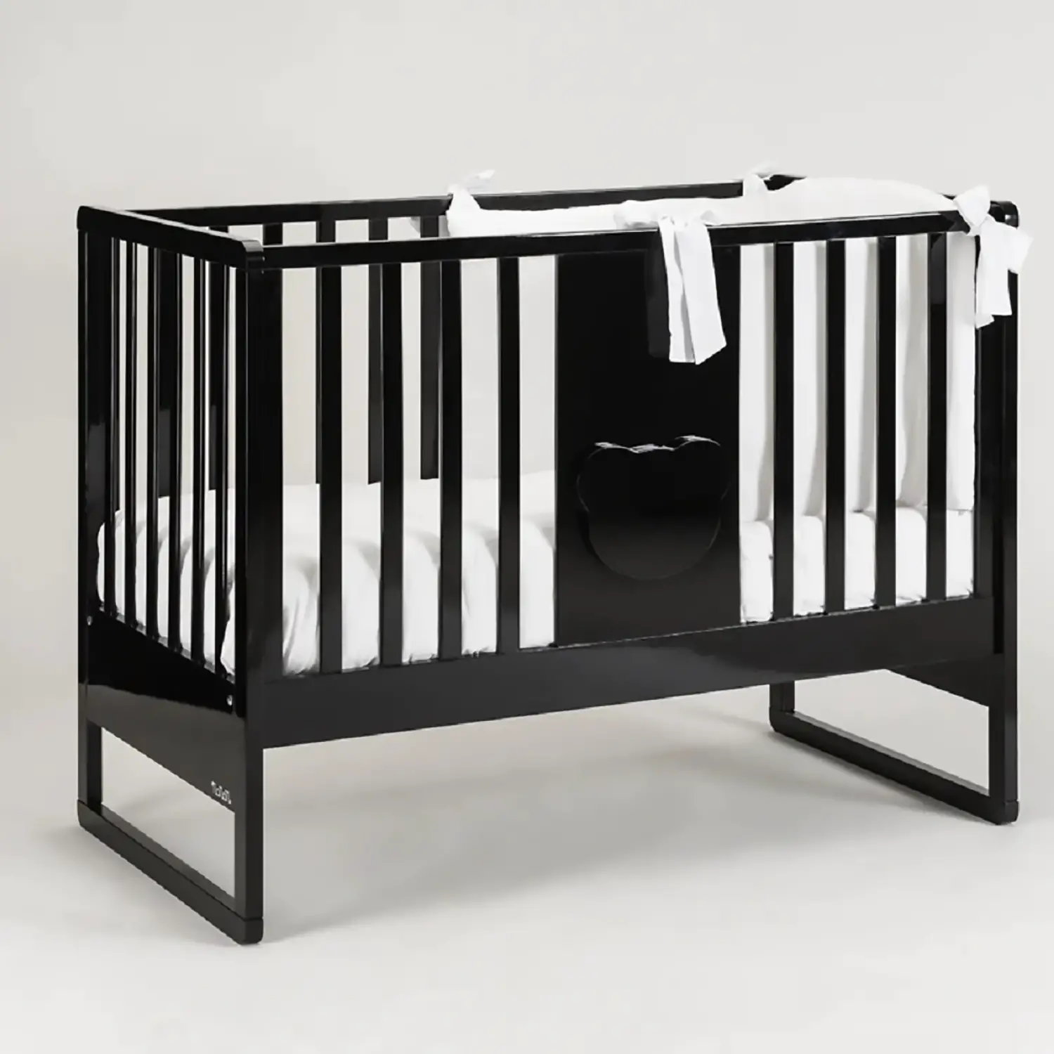 Nanan presenta il nuovo lettino Black editon, laccato con vernice nera lucida, per ottenere una finitura di design. Il lettino è dotato di doghe a protezione del bambino, perfette per accogliere il tuo piccolo fin dai primi giorni di vita. Una spondina è dotata di meccanismo sali-scendi per qualsiasi esigenza della mamma e del bebè. Il suo design essenziale ed elegante è perfetto per creare un ambiente raffinato ed unico nel suo genere. Scopri anche il comò ed il bagnetto black edition, un progetto esclusivo Nanan.