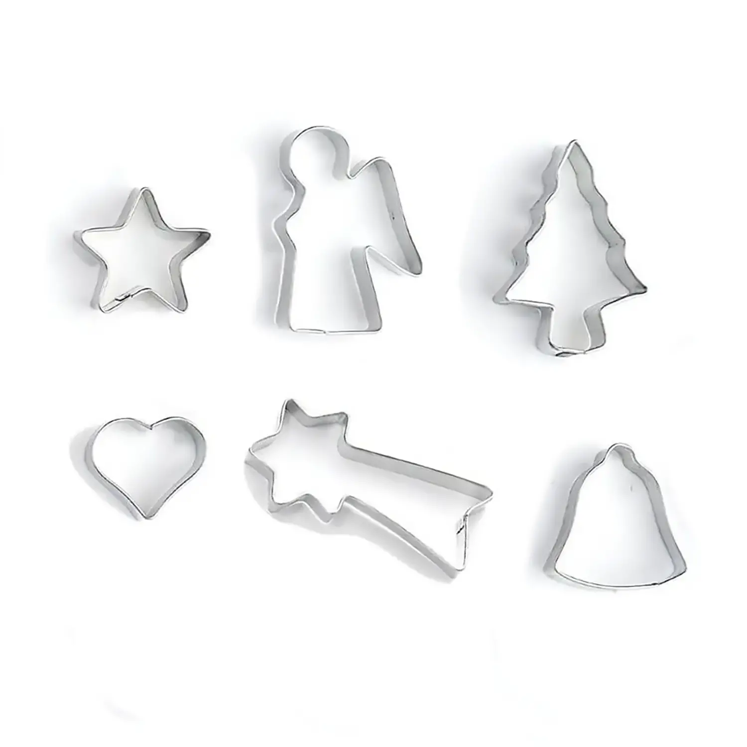 - ✅ Set of 6 small metal molds with different subjects: heart, star, fir tree, bell, comet and angel.