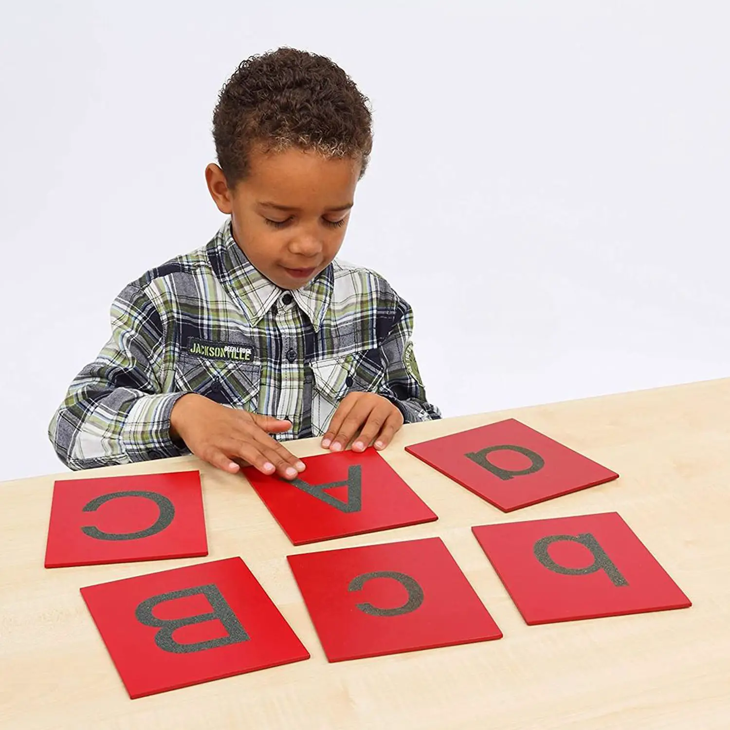 - ✅ 26 tavolette tattili in MDF con lettere maiuscole ruvidi per apprendimento sensoriale dell'alfabeto.