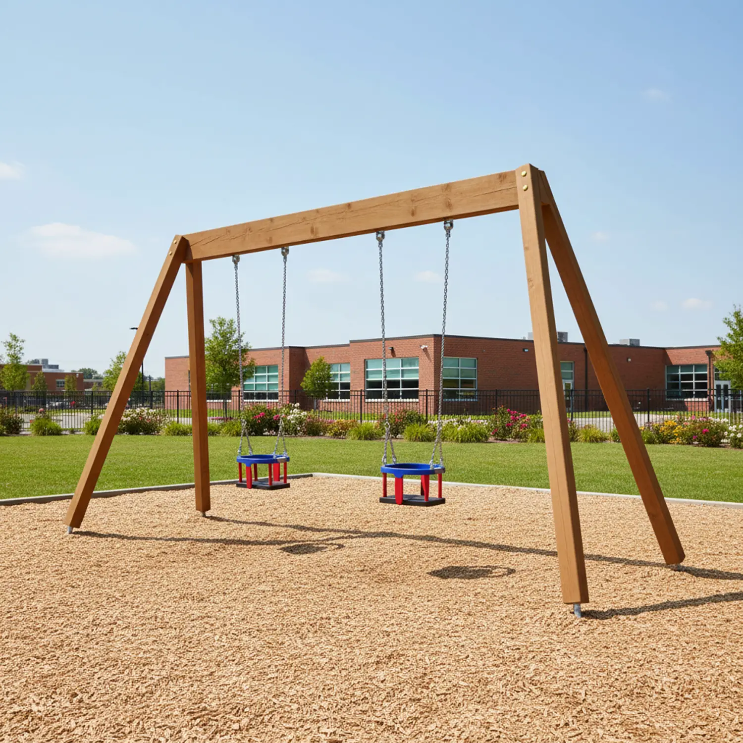 Altalena doppia per bambini piccoli e grandi, progettata per garantire sicurezza, comfort e divertimento. Perfetta per parchi giochi, giardini e scuole, offre un’esperienza di gioco stabile e protetta.