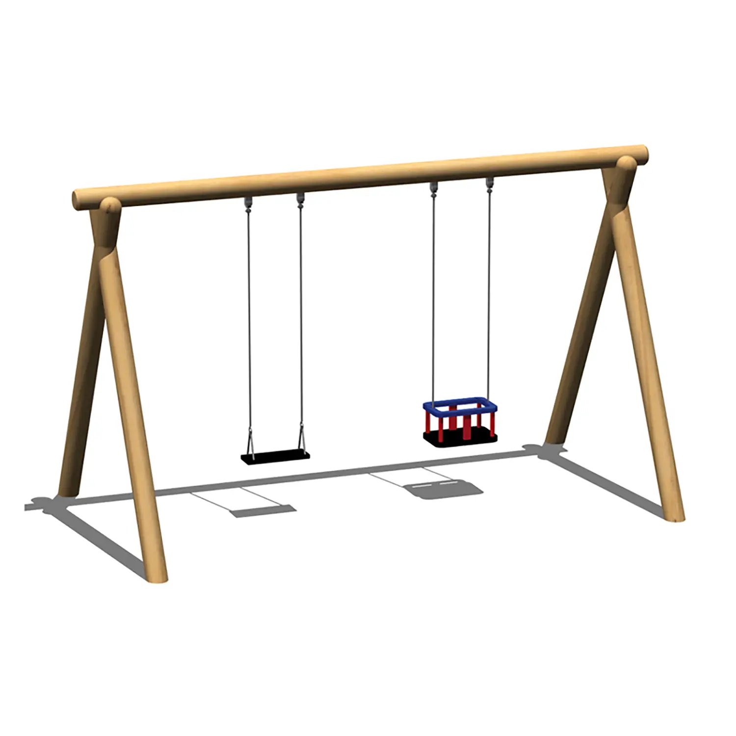 Versione speciale di altalena doppia, dotata di un seggiolino tradizionale ed uno a gabbia di sicurezza utilizzabile anche dai più piccoli.