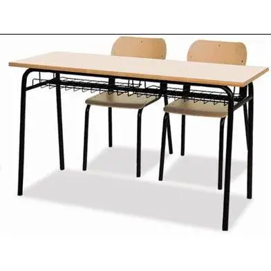 Two-seater Desk Without Footrest with Gridded Undertop for School Environments: Designed to provide durability and functionality in classrooms.