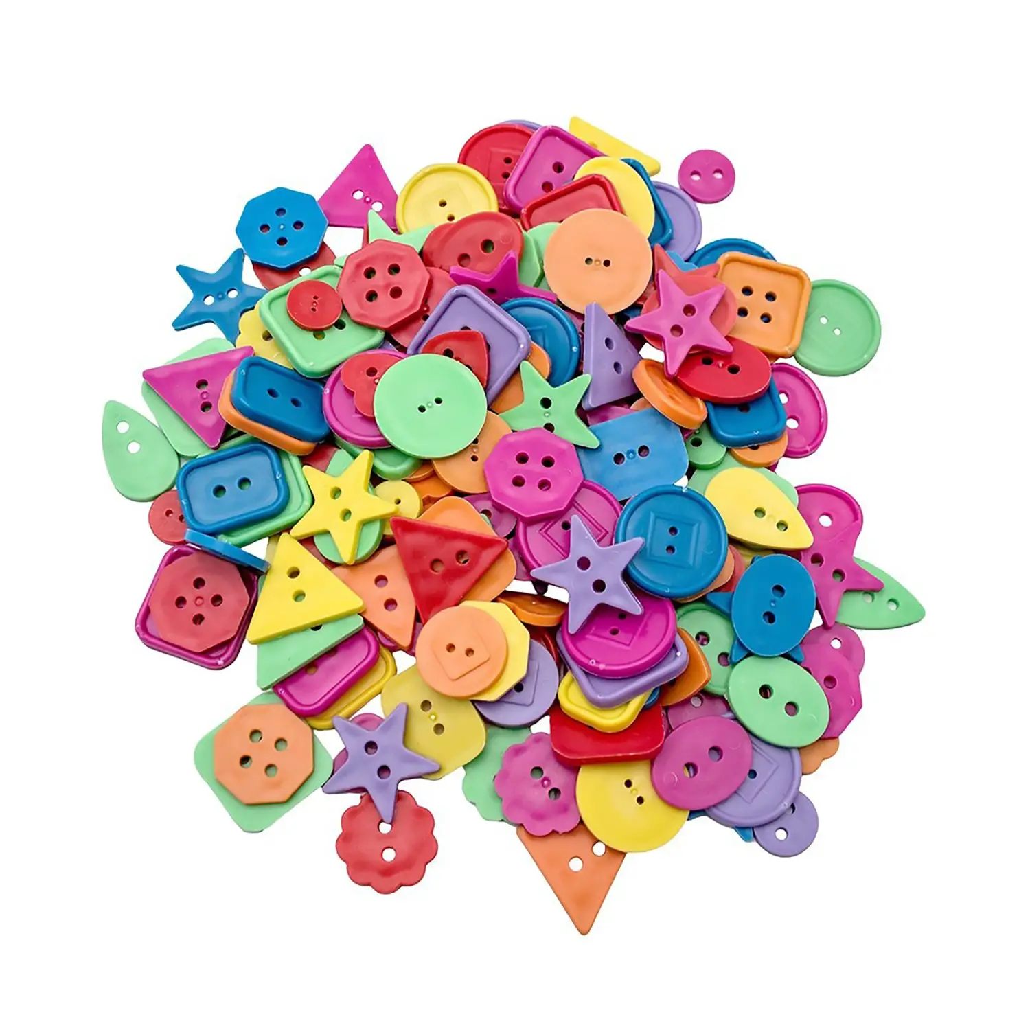 - ✅ Assorted set of durable plastic buttons, ideal for art and teaching projects.