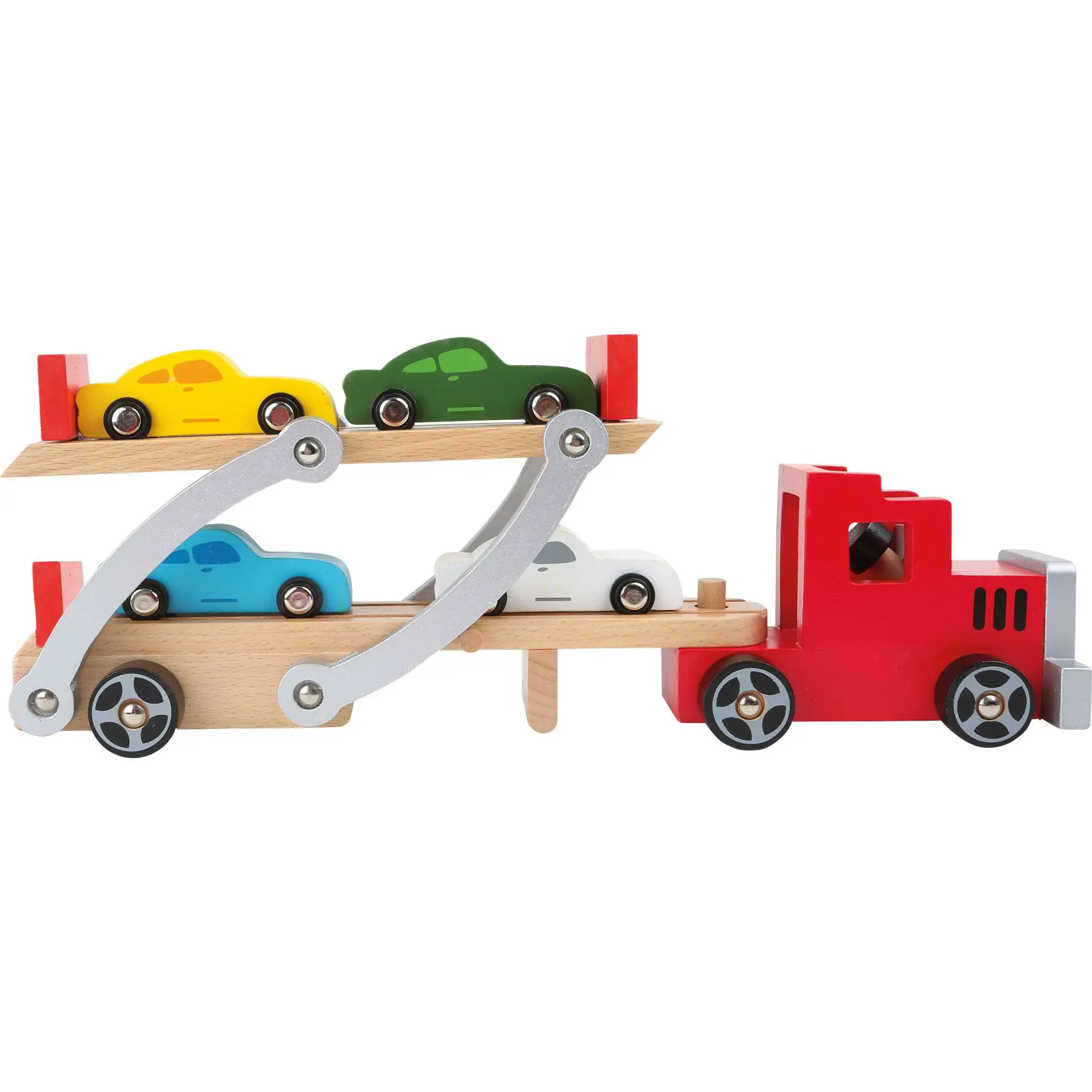Complete Set: In addition to the car carrier, the set includes four wooden cars, ready to be transported on adventure.