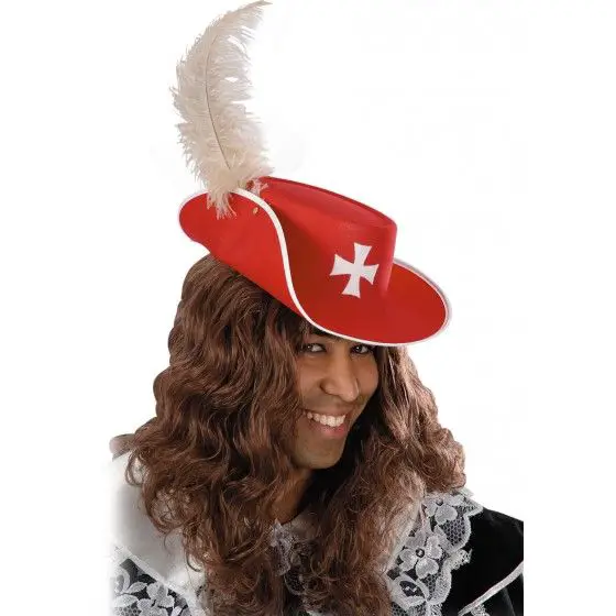 Scegliete voi: Athos, Porthos o Aramis…o magari D’Artagnan! Cappello in bivelluto rosso con passamaneria e piuma