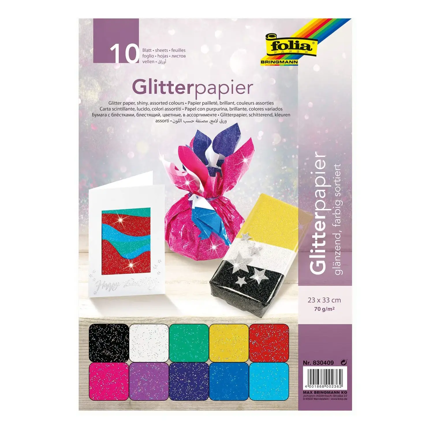 Carta Glitterata 70 gr/mq - 23x33 cm - 10 Fogli Colorati