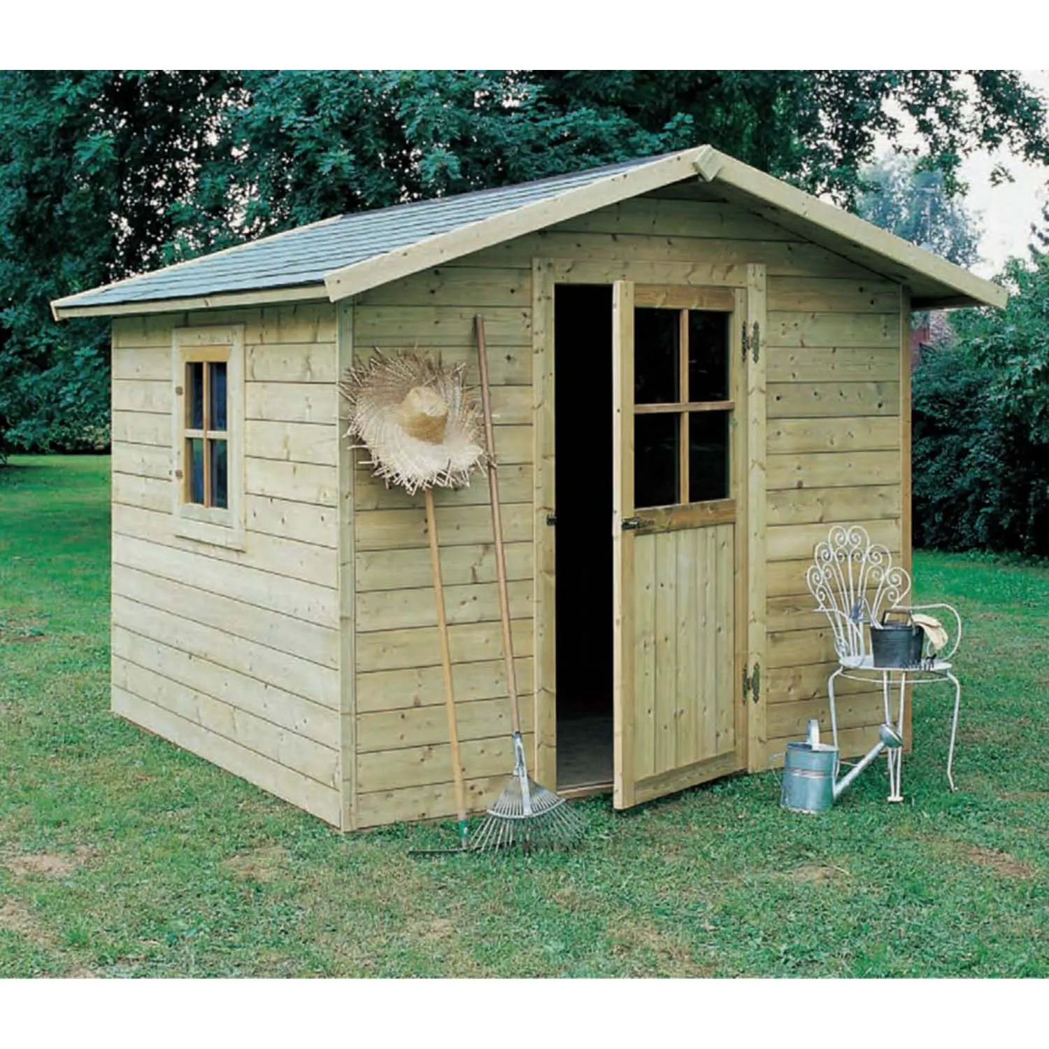 Casetta da giardino realizzata con perline di abete spessore 2,8 cm con lavorazioni ad incastro tipo “block Haus”.