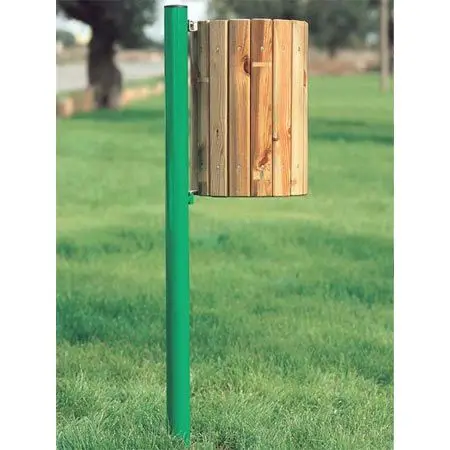 Cestino cilindrico in lamiera zincata rivestito con doghe in Pino Silvestre trattate per esterno come protezione dalla putredine, dalla muffa e dagli agenti atmosferici.