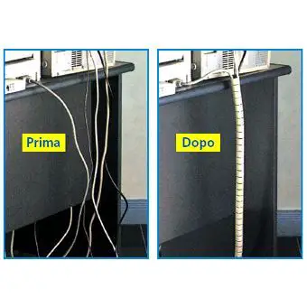 Copricavo con applicatore. Per risolvere gli inestetismi dei cavi dietro le scrivanie. Lunghezza 150 cm. Diametro 30 mm.