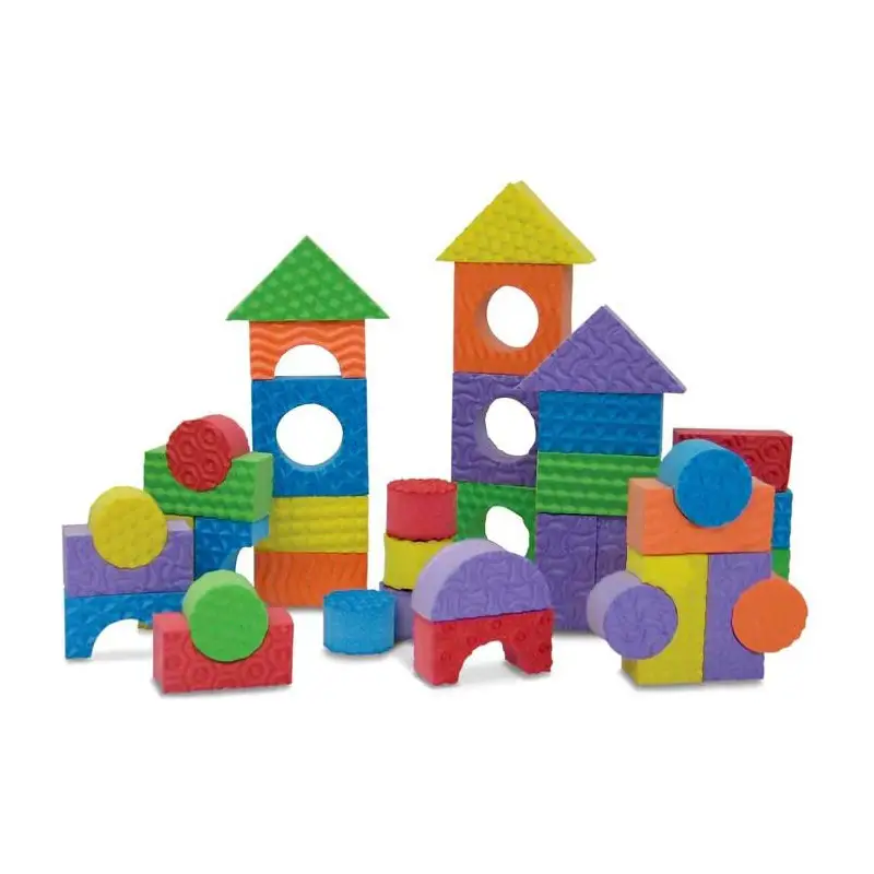 - Materiale Morbido e Gommoso: I blocchi sono realizzati in Eva morbida, che è piacevole al tatto e stimolante per i sensi tattili.